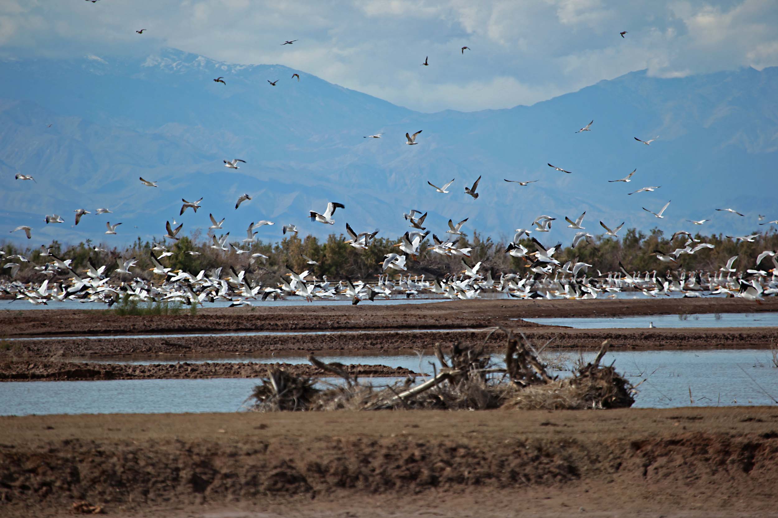 Two of the places we visited at the Salton Sea were all on the east shore. The Salton Sea Visitor's center was great for birds. I saw a Verdin, Great-tailed Grackles, Ring-billed Gull, Reddish Egrets, Ring-billed Gull eating the eyes of a Talapia fish, Black-bellied Plover, etc. The second place we went was to the Wister Waterfowl Management Area where we drove on the dikes to get to the water. We saw over a thousand American White Pelicans, White-faced Ibis, Yellow-rumped Warblers, Blue Heron, a lot of American Coots, etc.