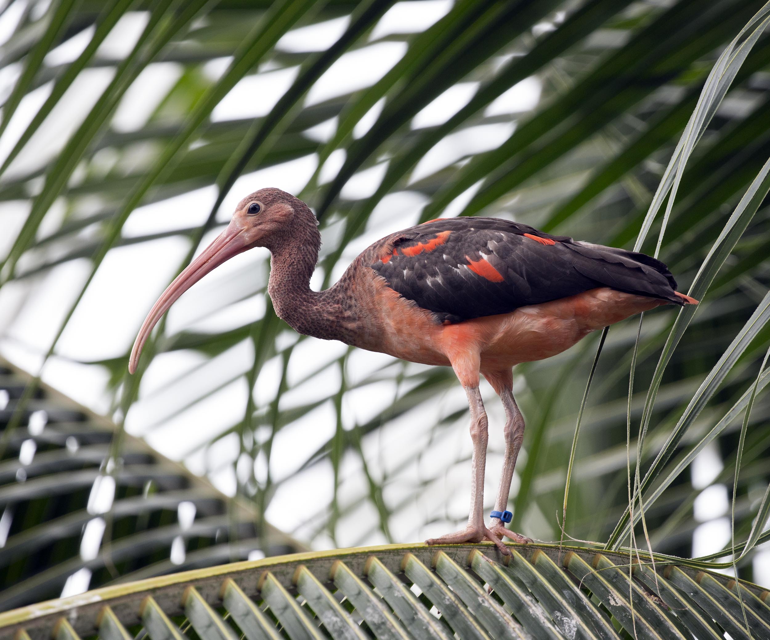 The Scarlet Ibis is a wading bird and it is closely related to the American White Ibis. They may even be in the same species since there are reports that they have bred together and produced chicks that have salmon or pink adult plumage.