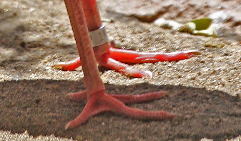 Juveniles are grey, brown and white. As they grow, the pigments from eating red crustaceans produces the scarlet plumage. Females are slightly smaller than the males.
