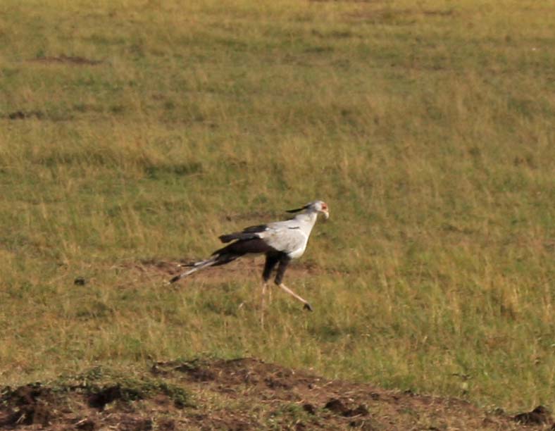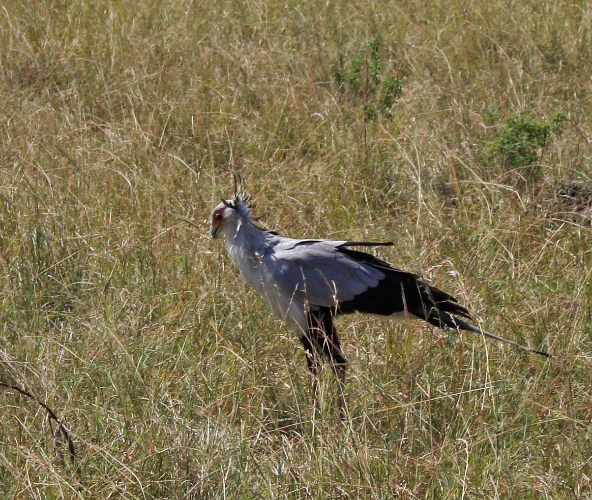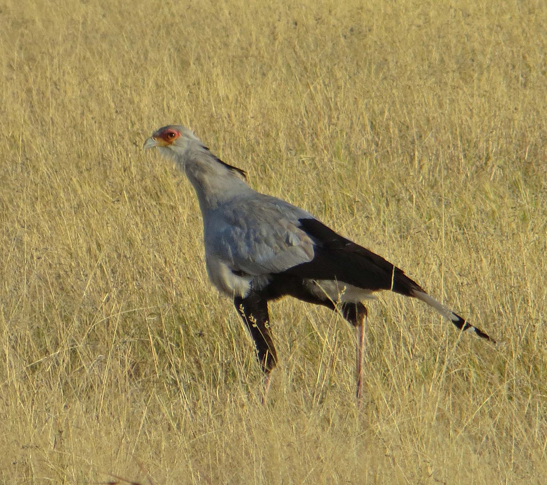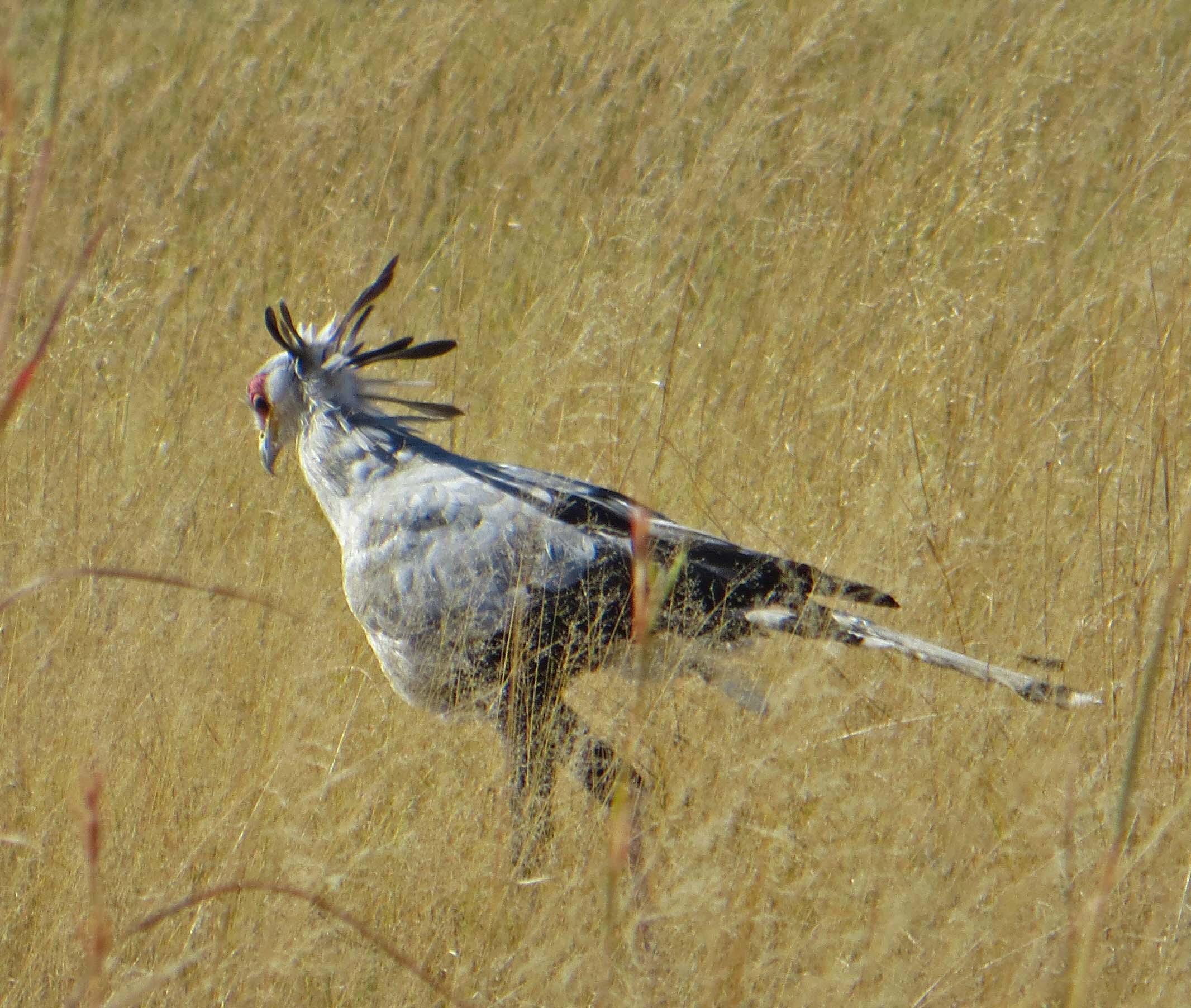 The Secretarybird is considered a bird of prey but is in its own family. They are found in sub-Saharan Africa from Senegal to Somalia and south to the Cape of Good Hope. The male and female look similar although the male has longer head plumes and tail feathers. They are not considered migratory but will follow food sources.