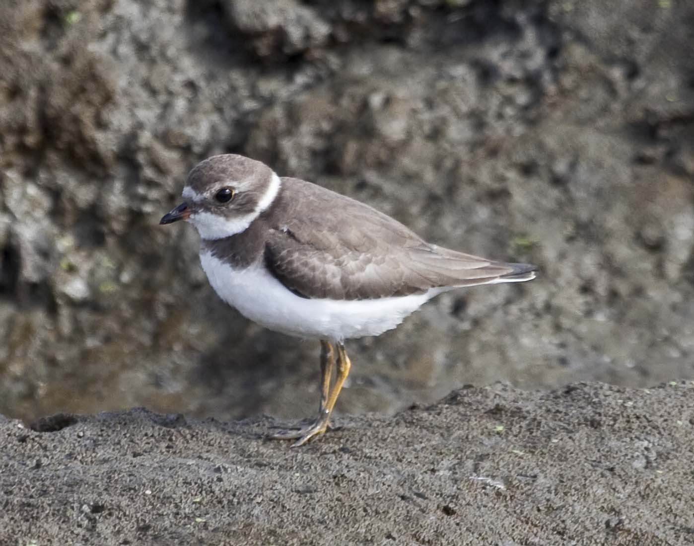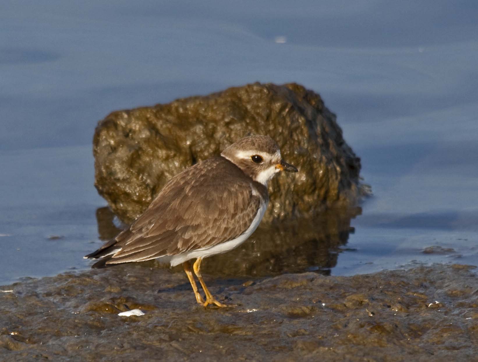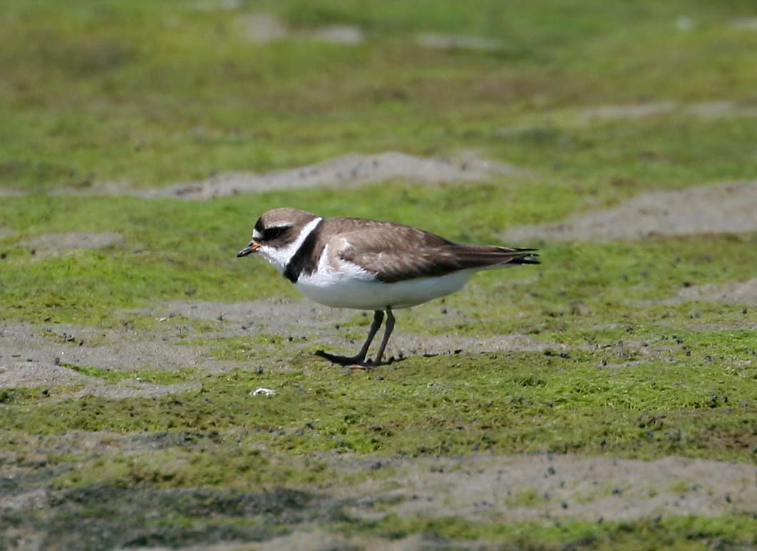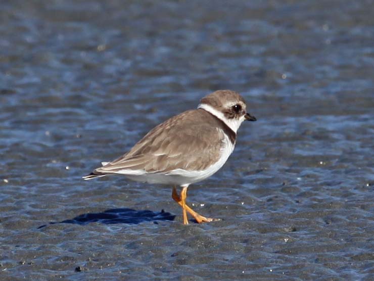 The Semipalmated Plover has a short bill and yellow-orange legs.