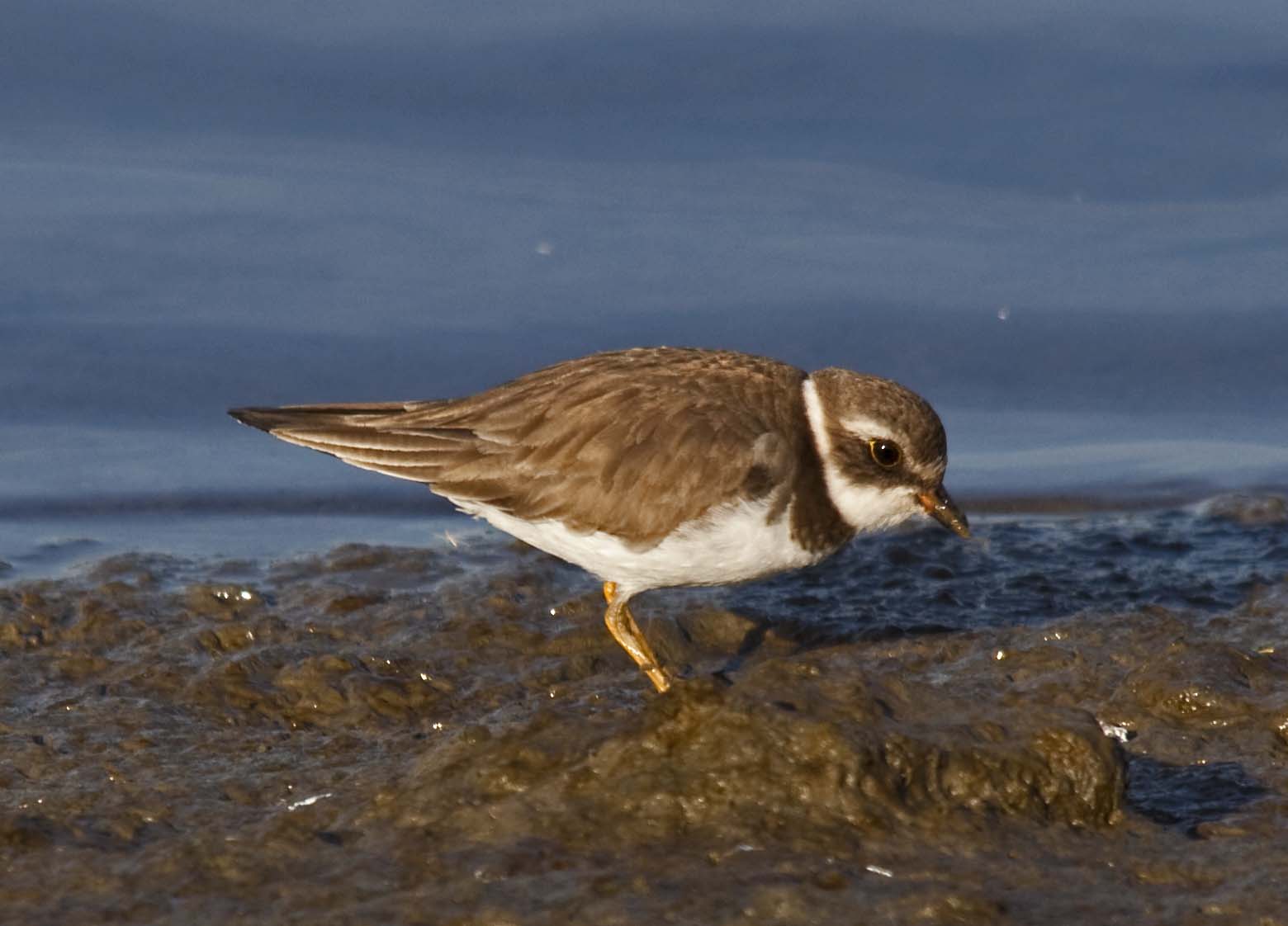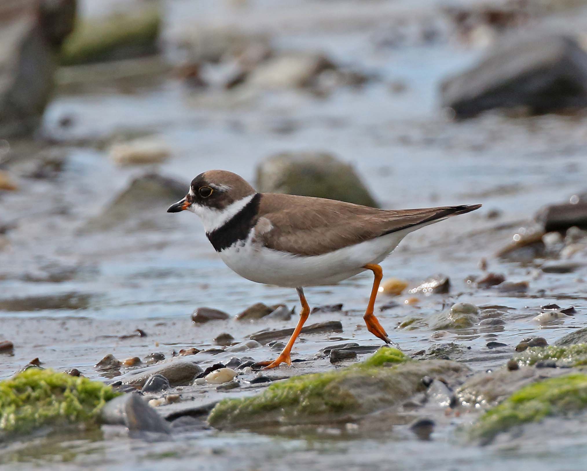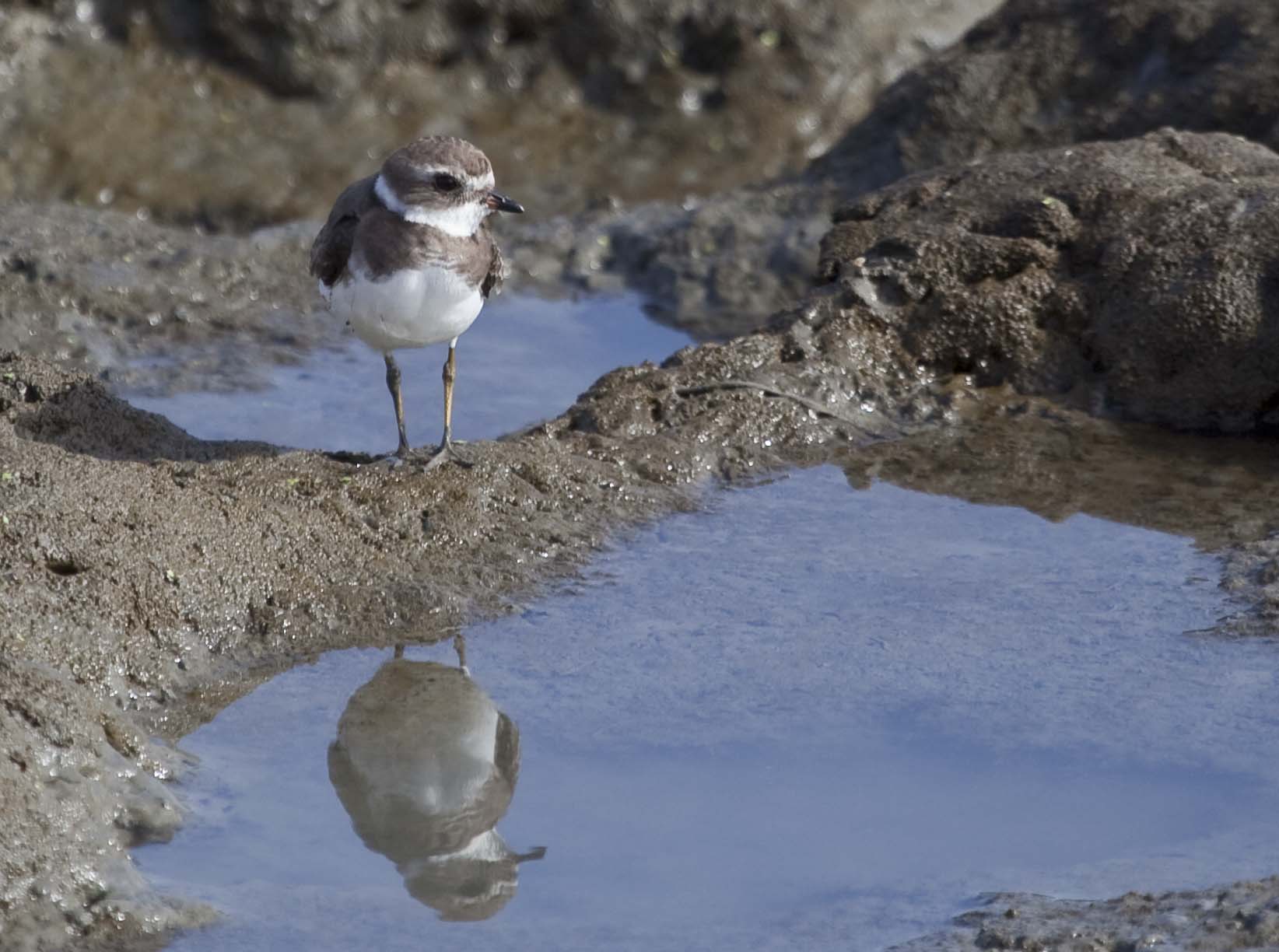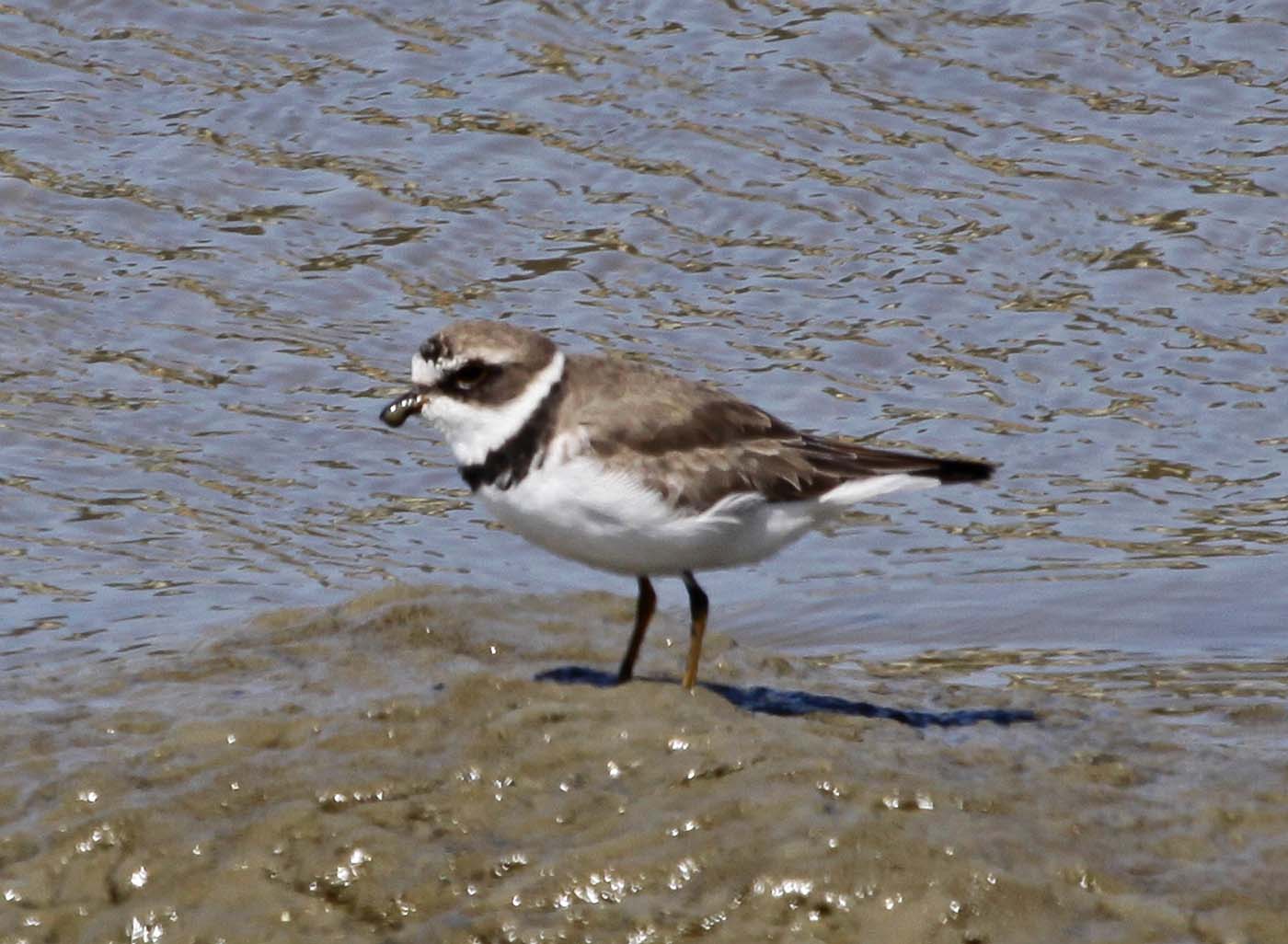 The Semipalmated Plover has a short bill and yellow-orange legs.