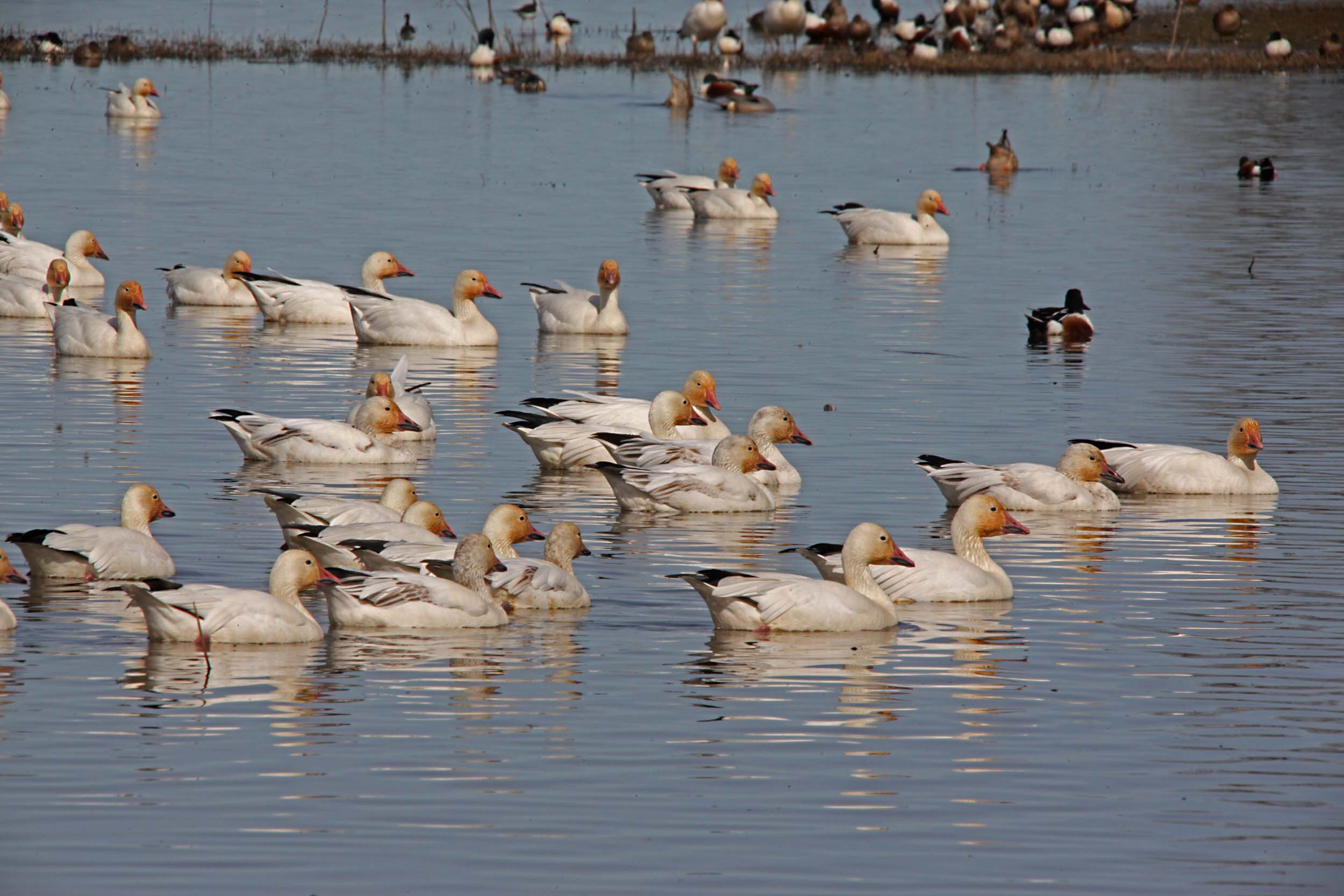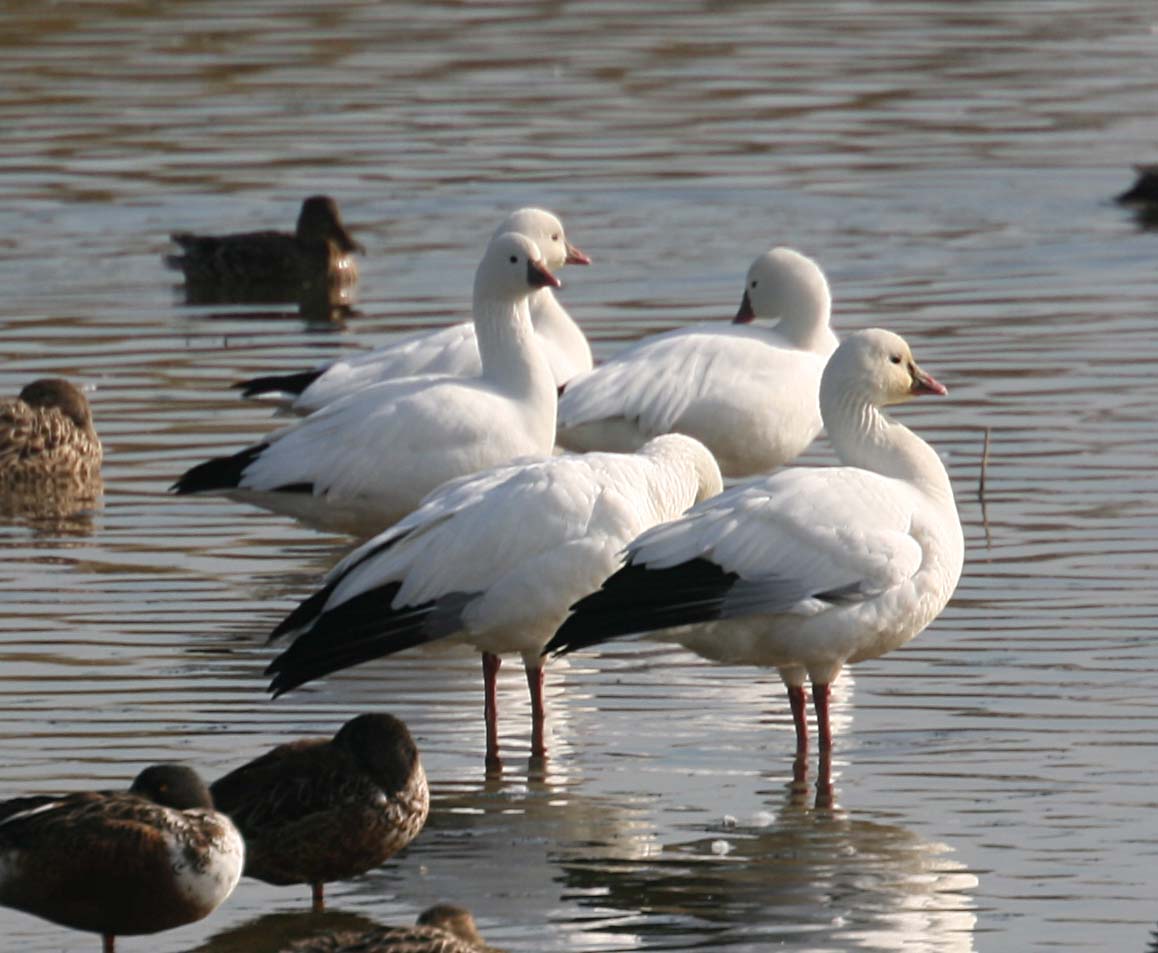 As with Greater White-fronted Geese, the Snow Goose can be found in the thousands at the Sacramento Wildlife Refuge as they migrate. They are similar to Ross's Geese but they are larger and the bill is different. They are a North American goose.
