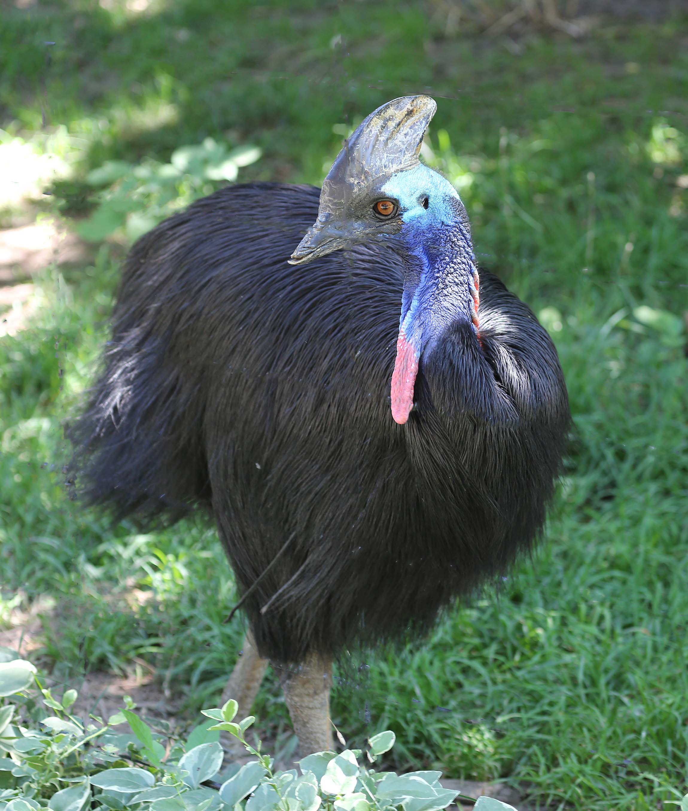 The Southern Cassowary is frequently known as the Double-wattled Cassowary. Other names include: Australian Cassowary and Two-wattled Cassowary. The male and female look similar but the female is larger and heavier.