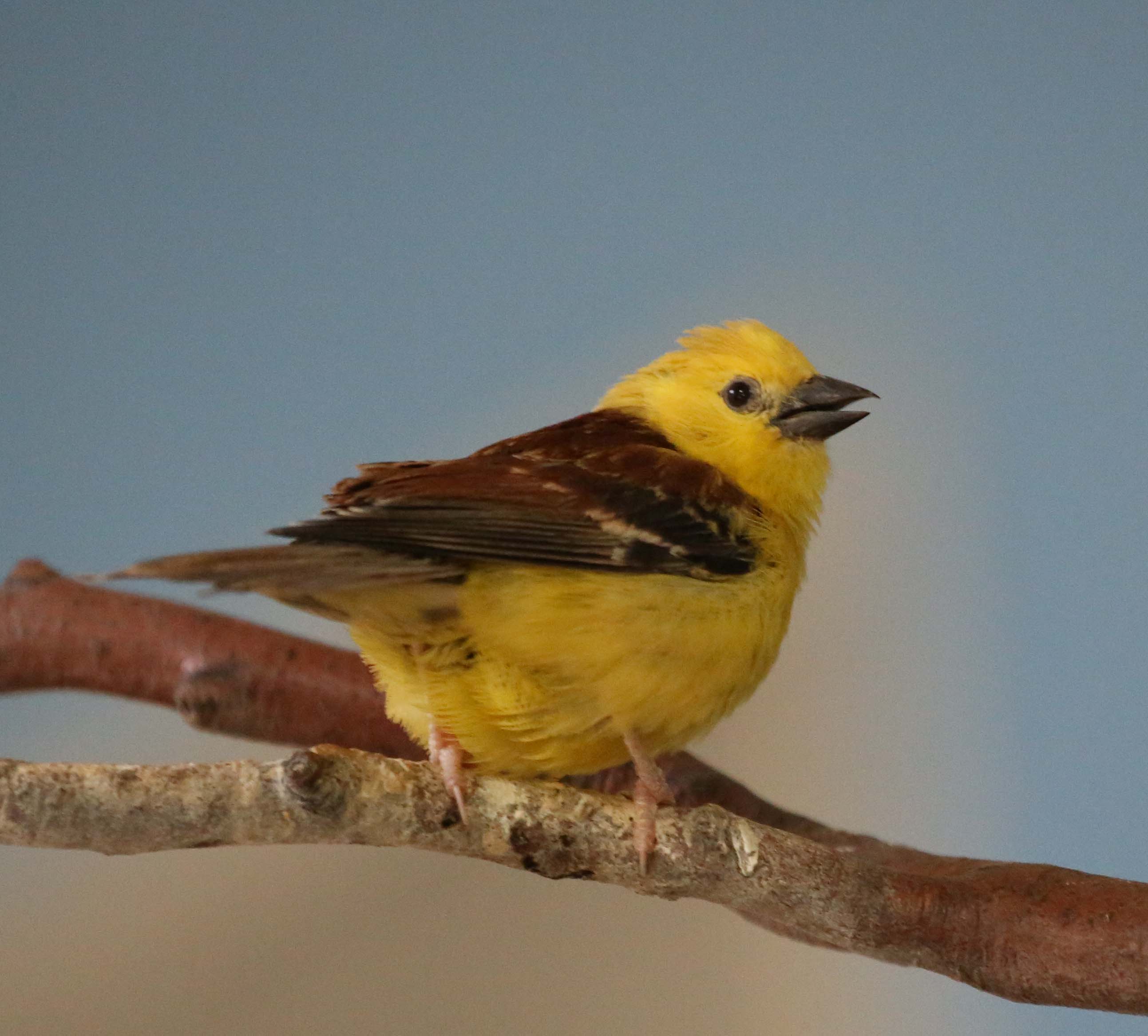The Sudan Golden Sparrow is also known as the Golden Song Sparrow. It is a small sparrow that is found south of Saharan Desert in Africa. It is a popular cage bird.