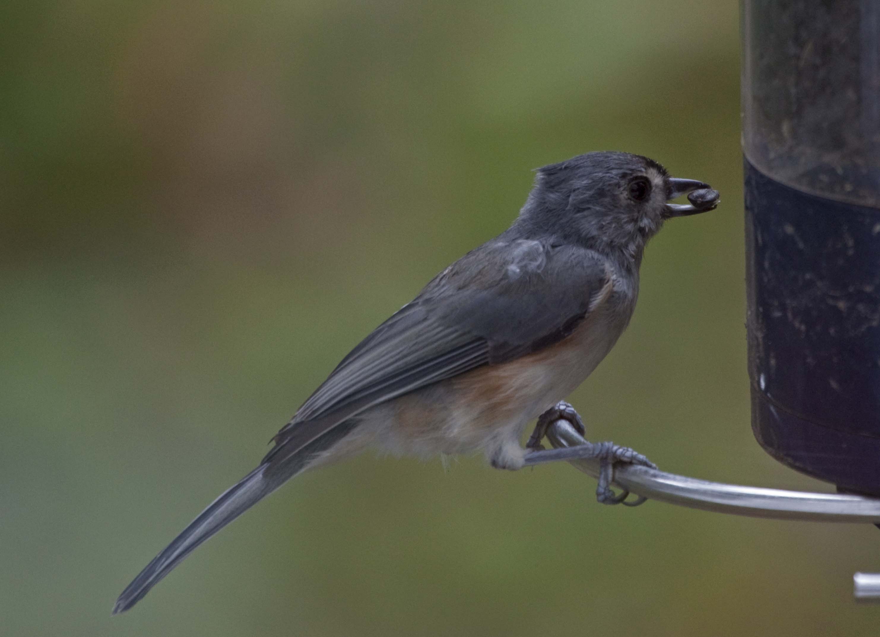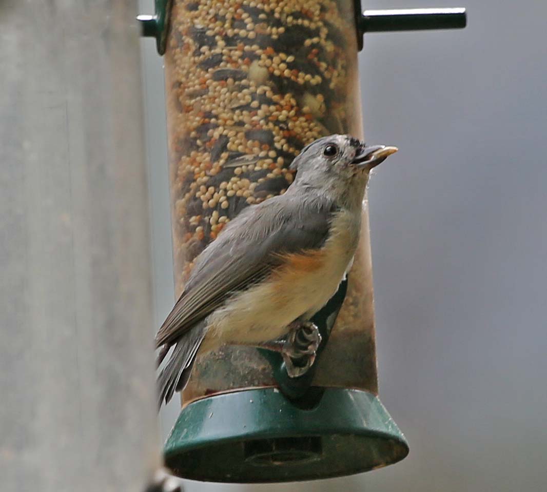 Tufted Titmouses are slightly larger than the Oak Titmouse and are rust-colored along the flanks. They are found in the eastern half of the U.S. They eat insects, berries, nuts and seeds.