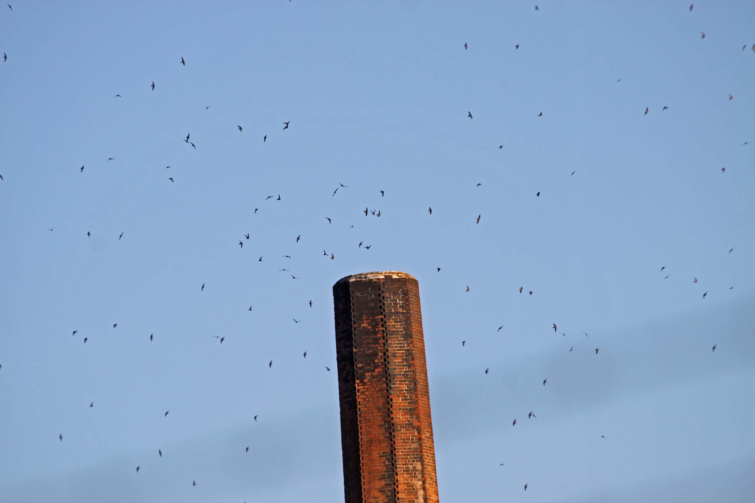 The Vaux's Swift is a small swift that is found on the western U.S., Canada and Mexico coasts. They are also found in Central America and northern Venezuela. We see them in the S.F. Bay area when they are migrating. Then it is a great sight to see thousands of them coming in at twilight to nest in a chimney for the night. Vaux's Swift feed on flying insects such as wasps, termites and flying ants.