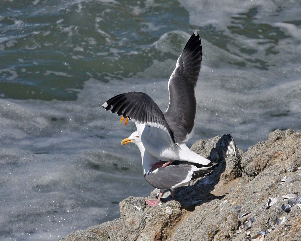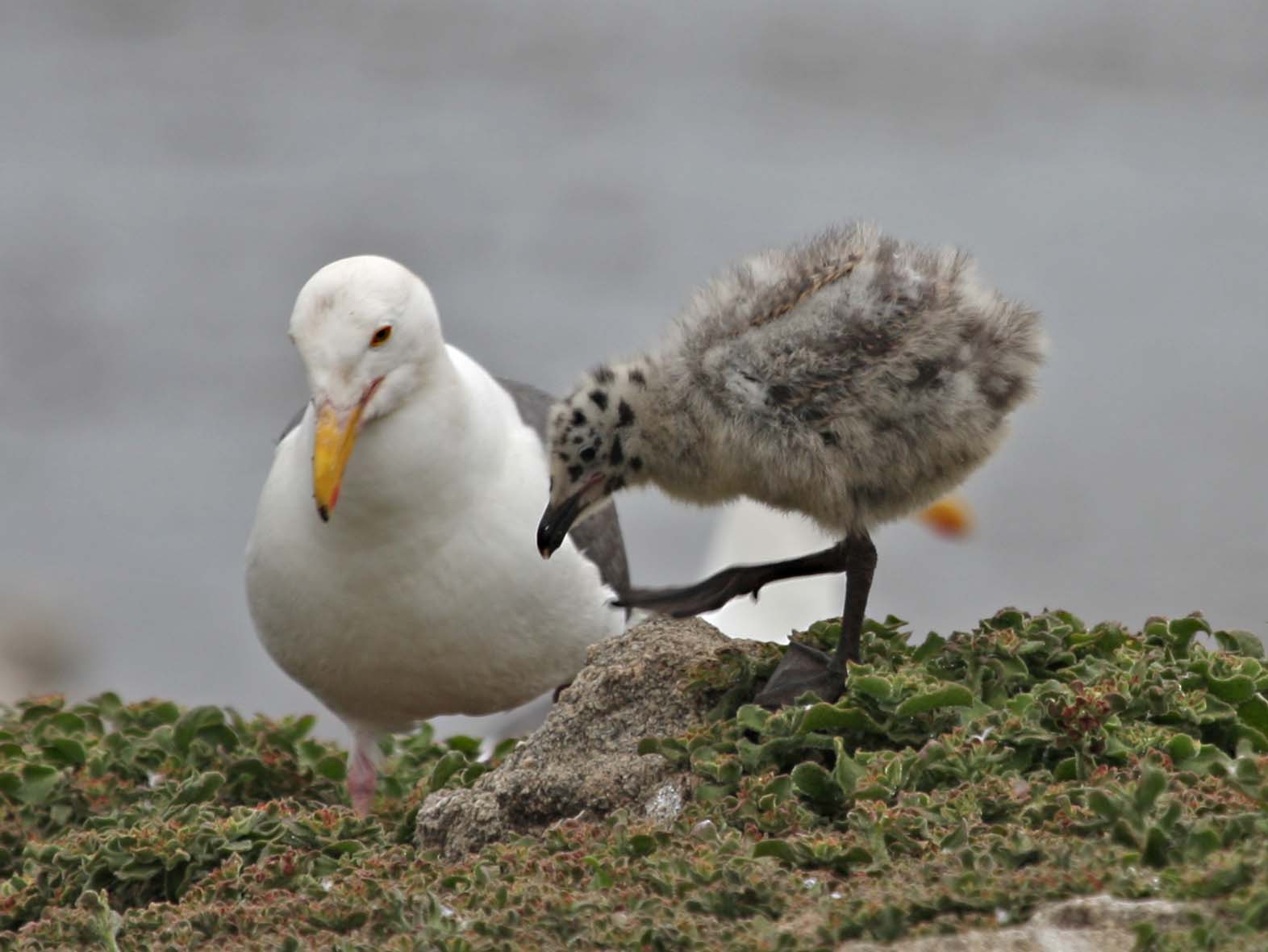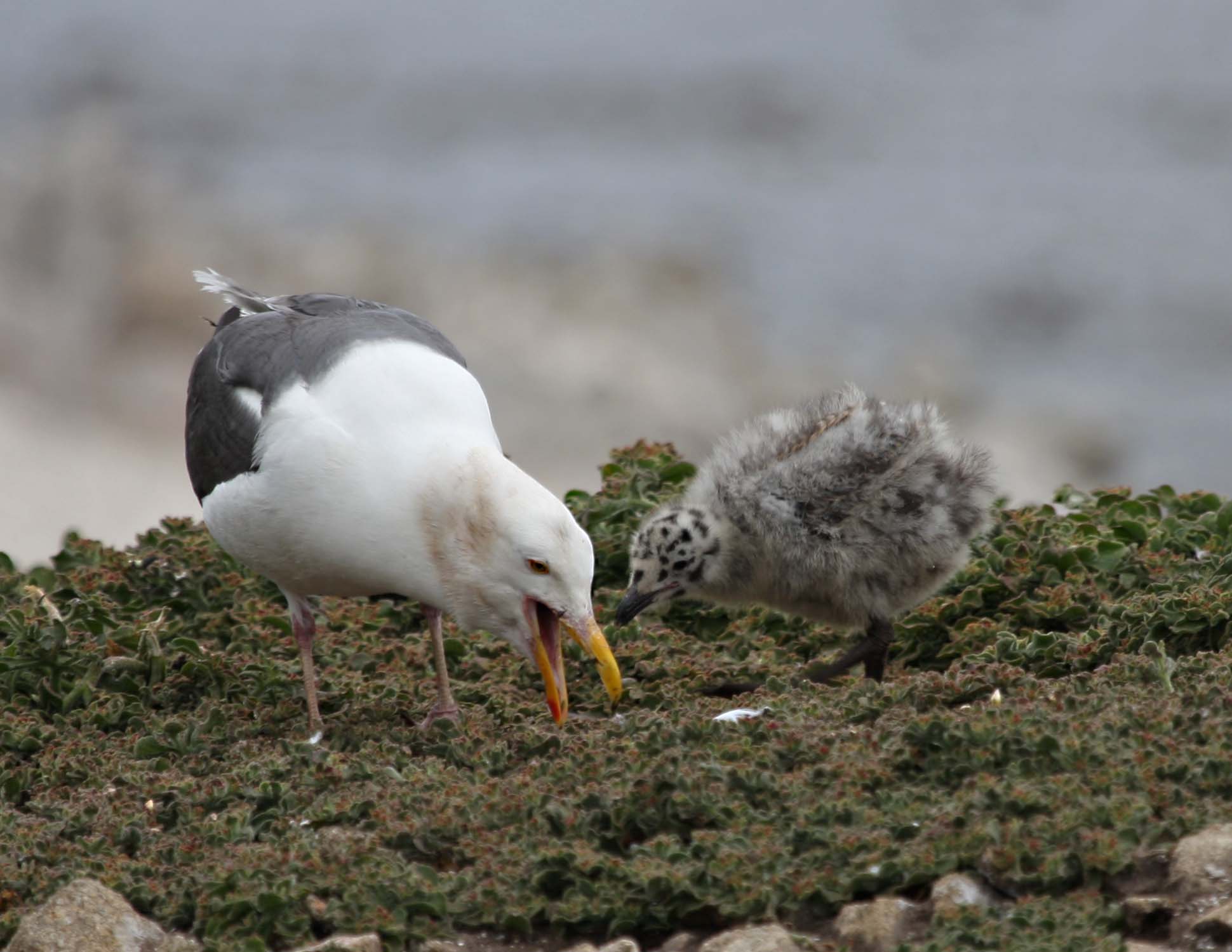 The Western Gull is a large white-headed gull that lives on the pacific coast of North America. They like to nest on offshore islands and rocks along the coast. Point Lobos is a good place to see them and their nests.