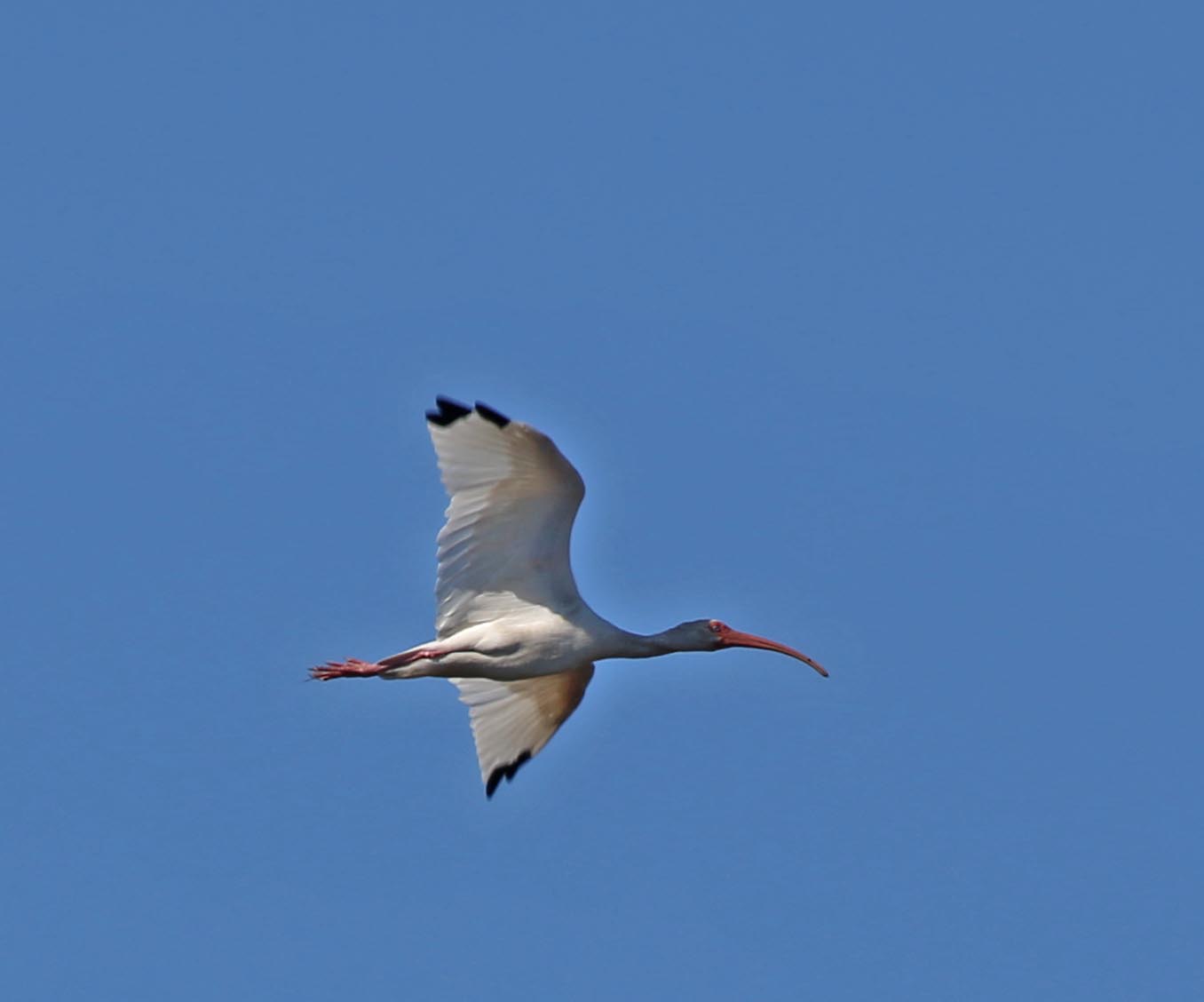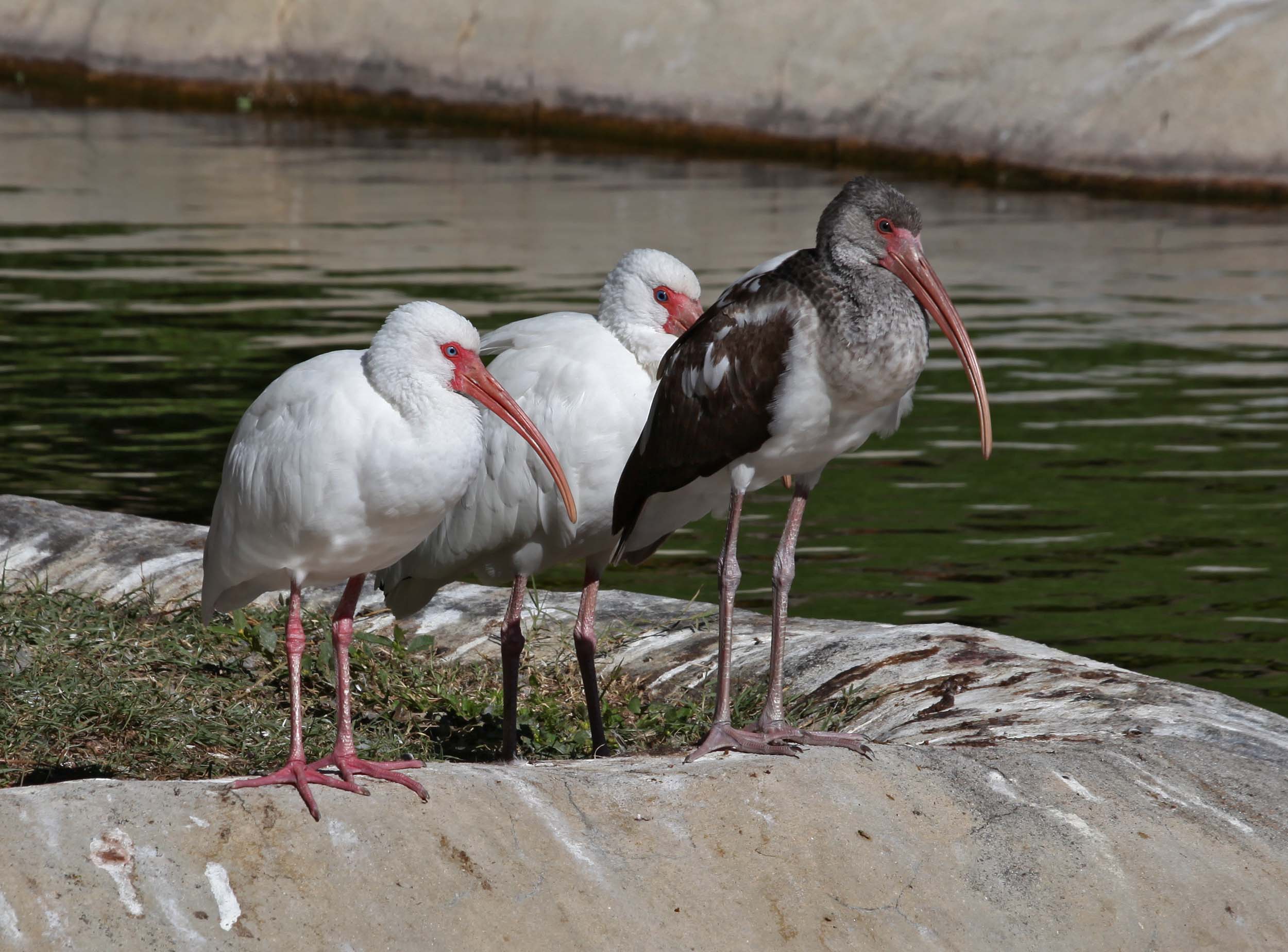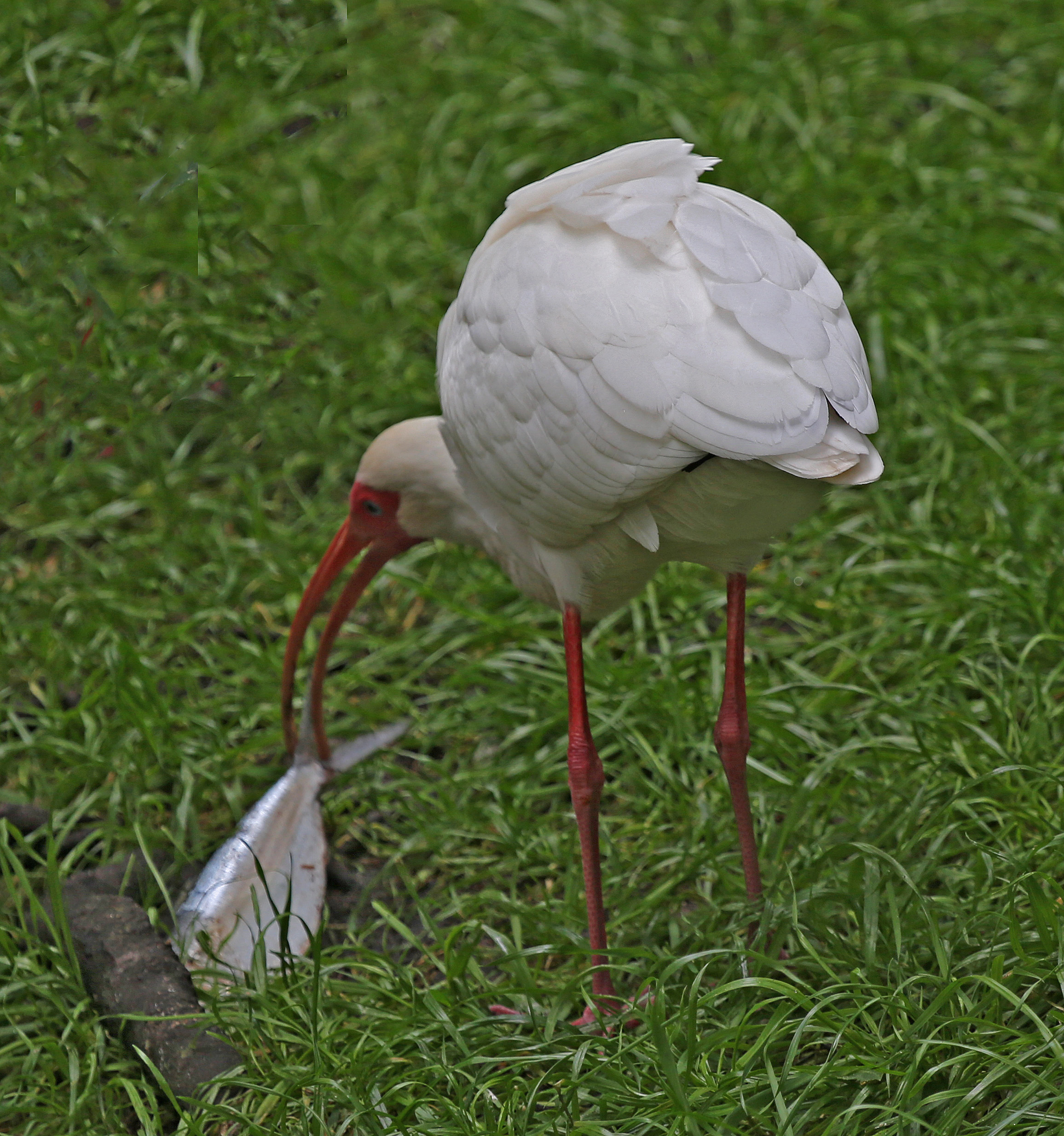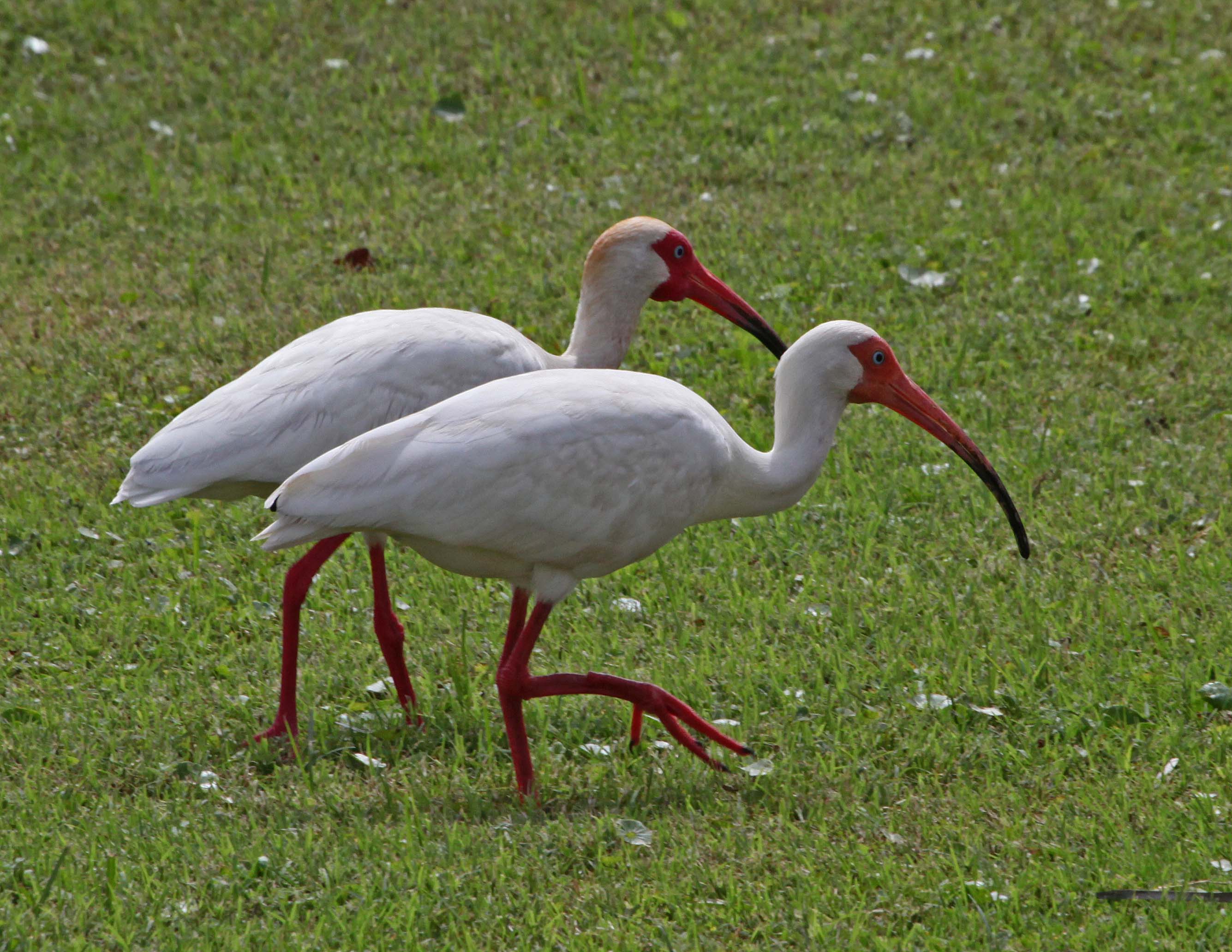The White Ibis or American White Ibis is a wading bird that lives in marshy wetlands and ponds. they are found from the mid-Atlantic and Gulf Coast of the U.S. south through most of the New World tropics. White Ibis feed by probing with their long, tonged beak. They eat fish, frogs and other water creatures such as frogs and insects.