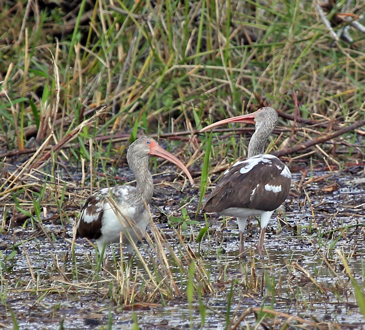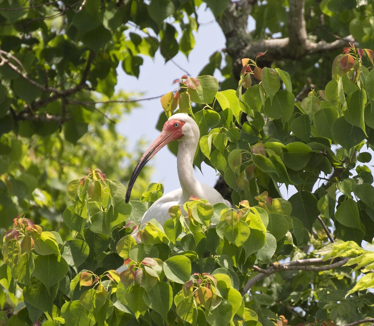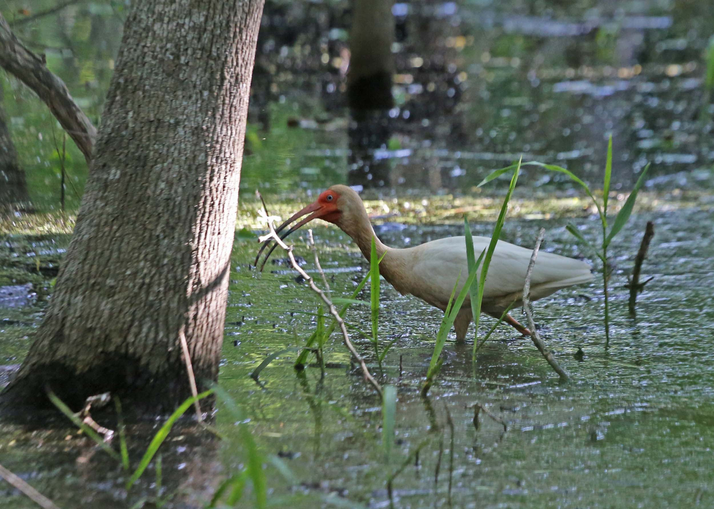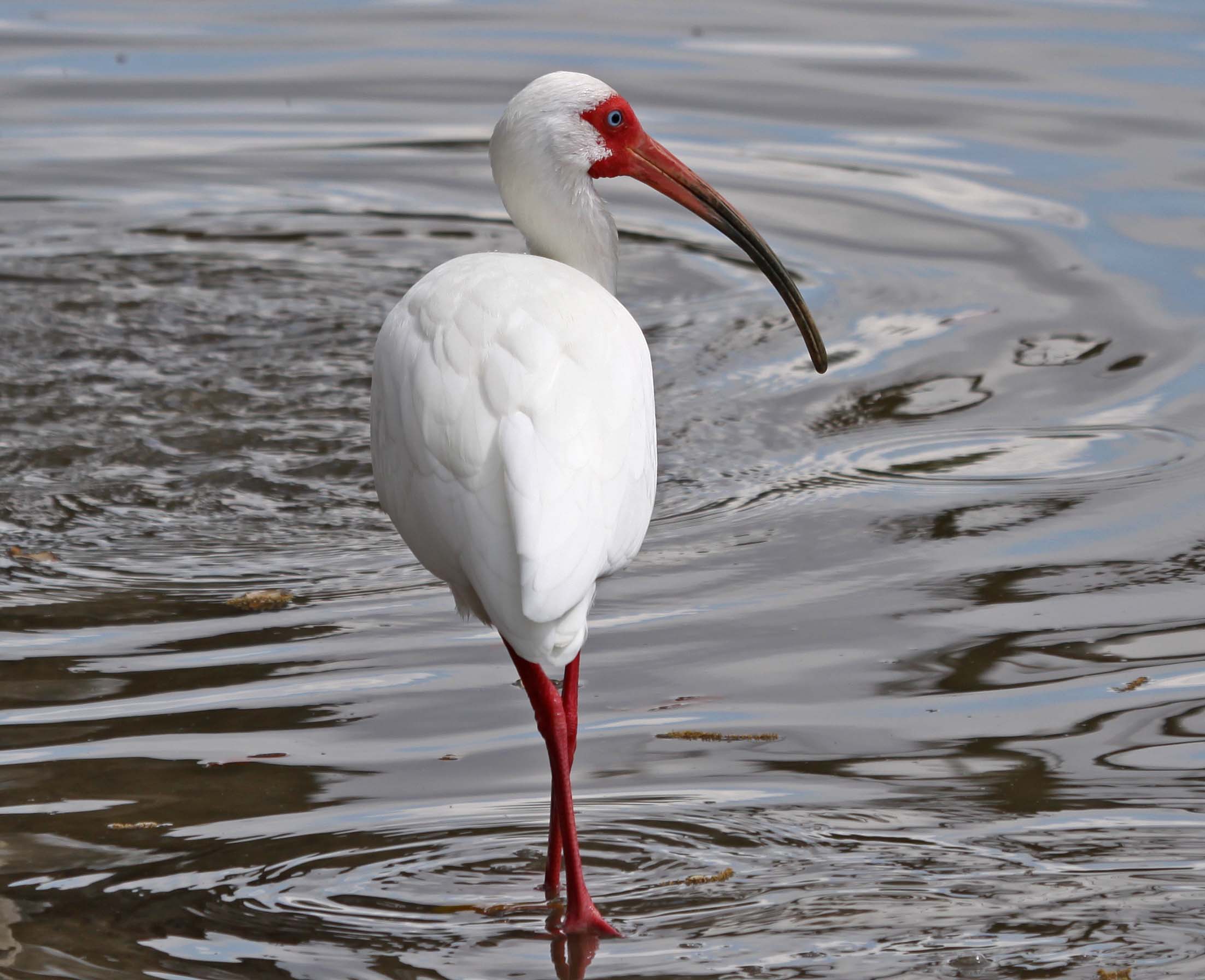 The White Ibis or American White Ibis is a wading bird that lives in marshy wetlands and ponds. they are found from the mid-Atlantic and Gulf Coast of the U.S. south through most of the New World tropics. White Ibis feed by probing with their long, tonged beak. They eat fish, frogs and other water creatures such as frogs and insects.