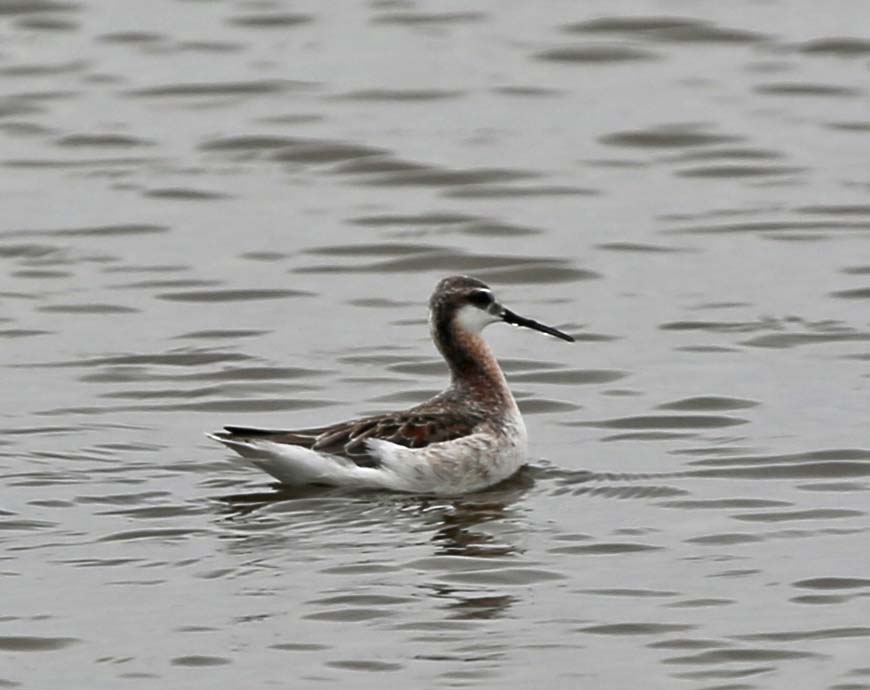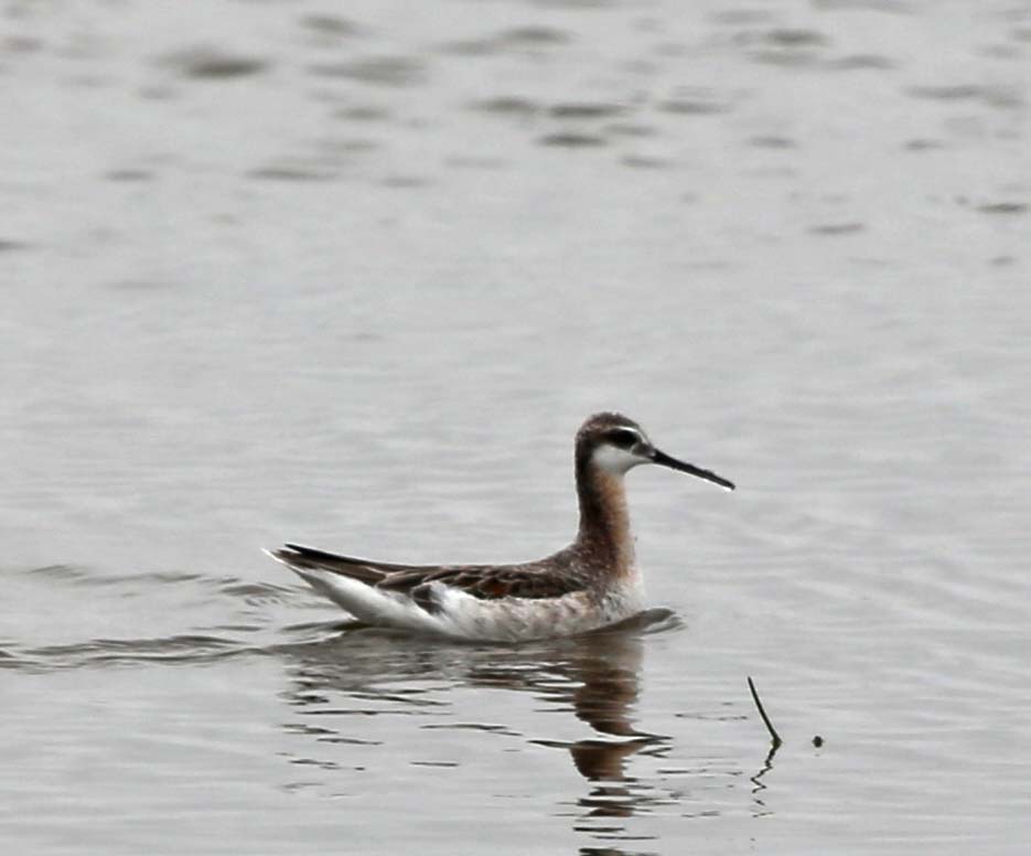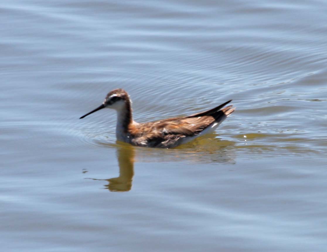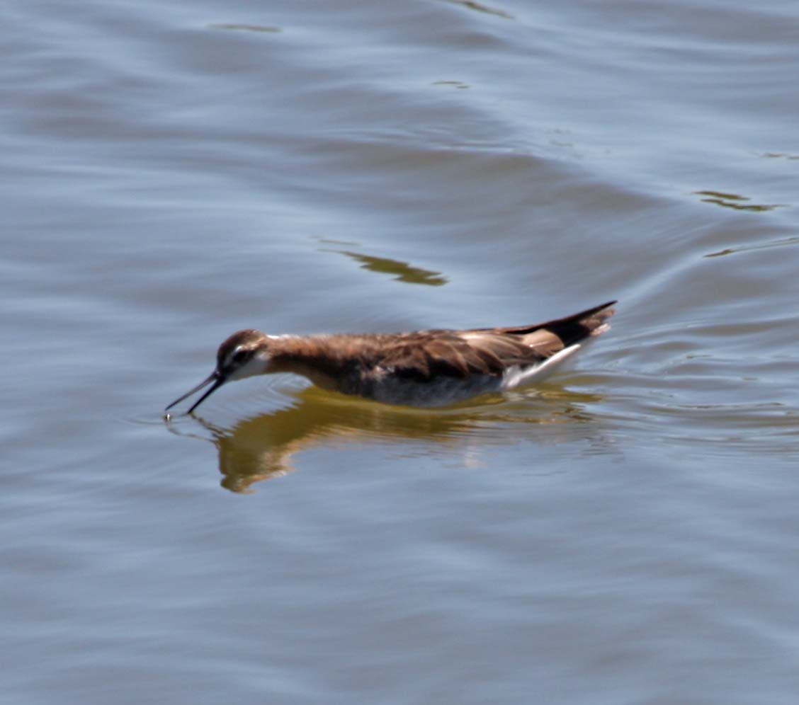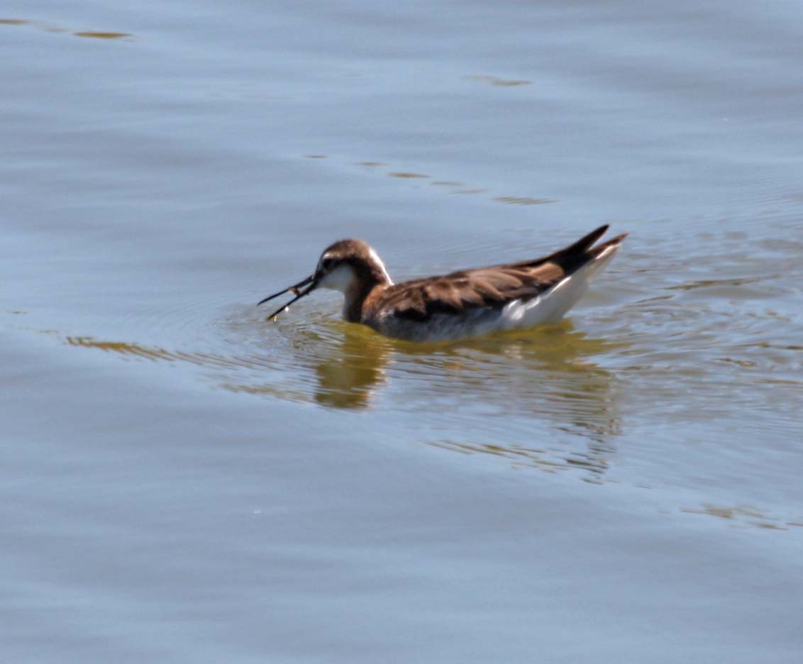 Wilson's Phalaropes are mostly found on fresh water breeds in North America and winters near the Andes in Argentina. They eat aquatic insects and small crustaceans in fresh water and shrimp and brine flies in salt water. They pick small bits of food from the water's surface. Sometimes they will spin in tight circles to create upwellings of food although they do this less than other Phalaropes.