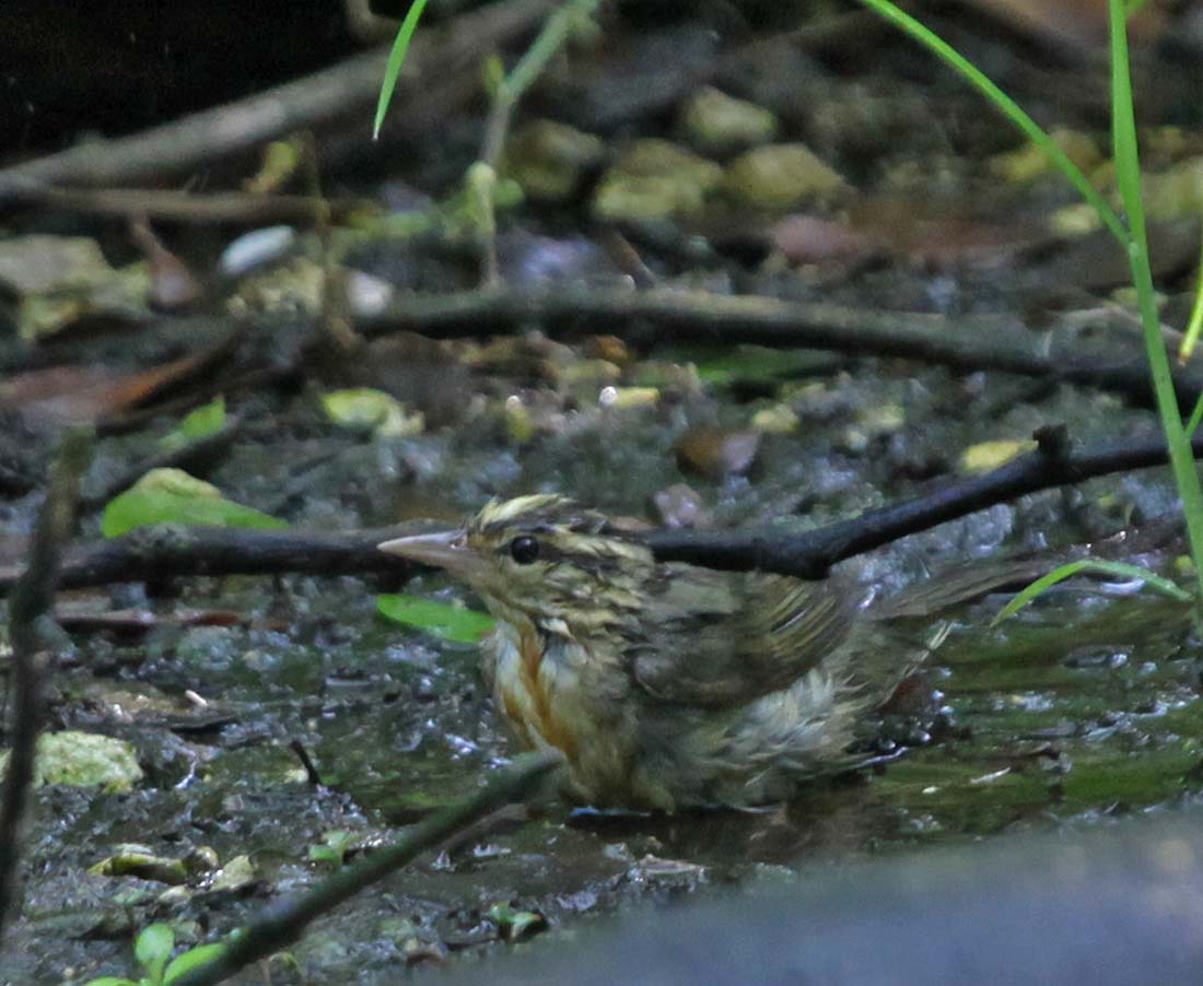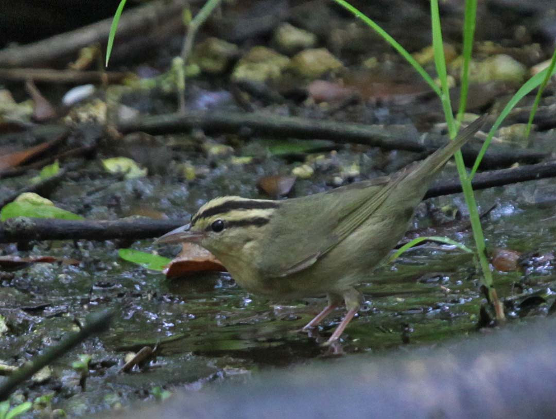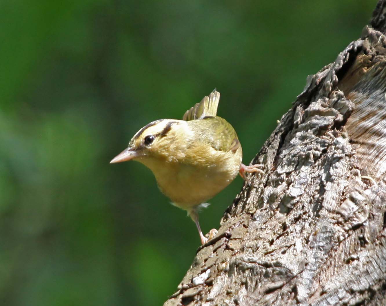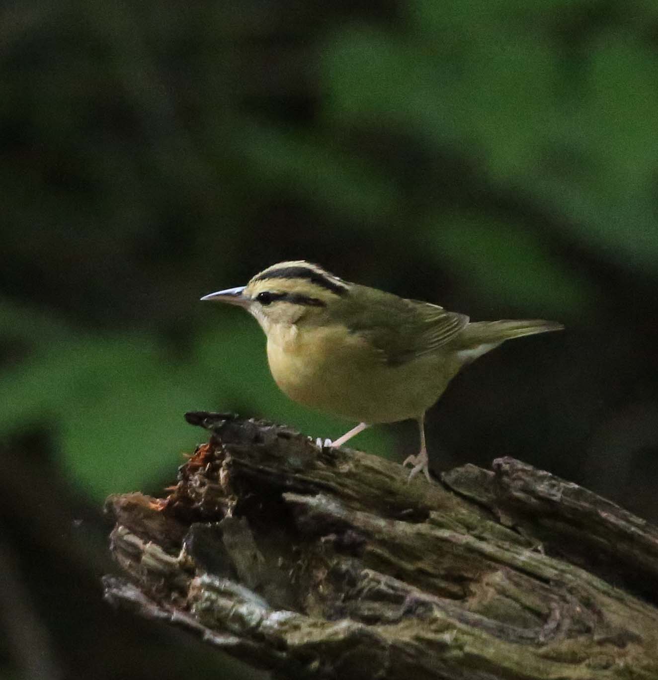 The Worm-eating Warbler winters in southern Mexico and Central America and breeds in dense deciduous forests in eastern United States. Males and females look similar. They eat insects and rarely if ever eat earthworms.