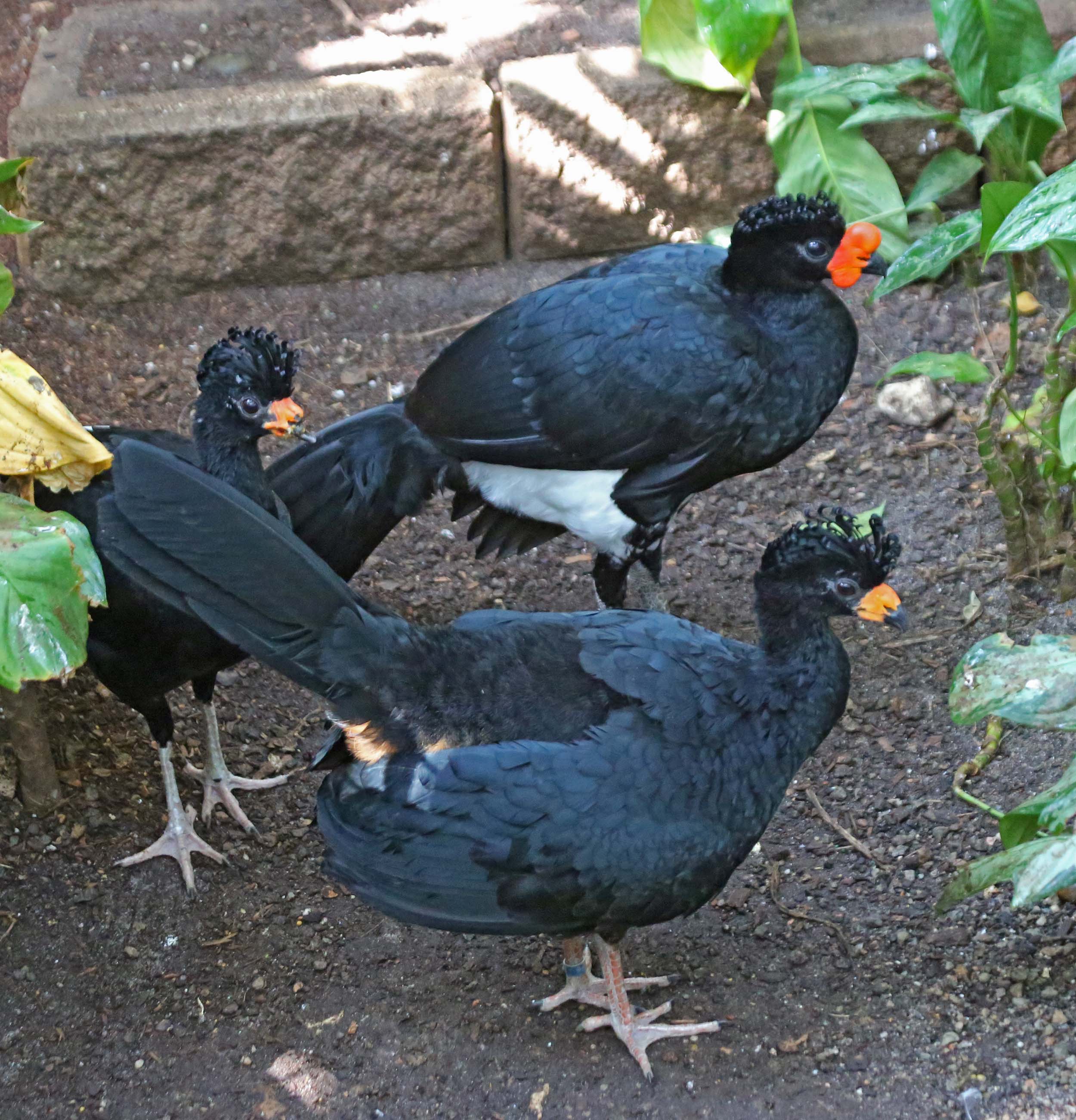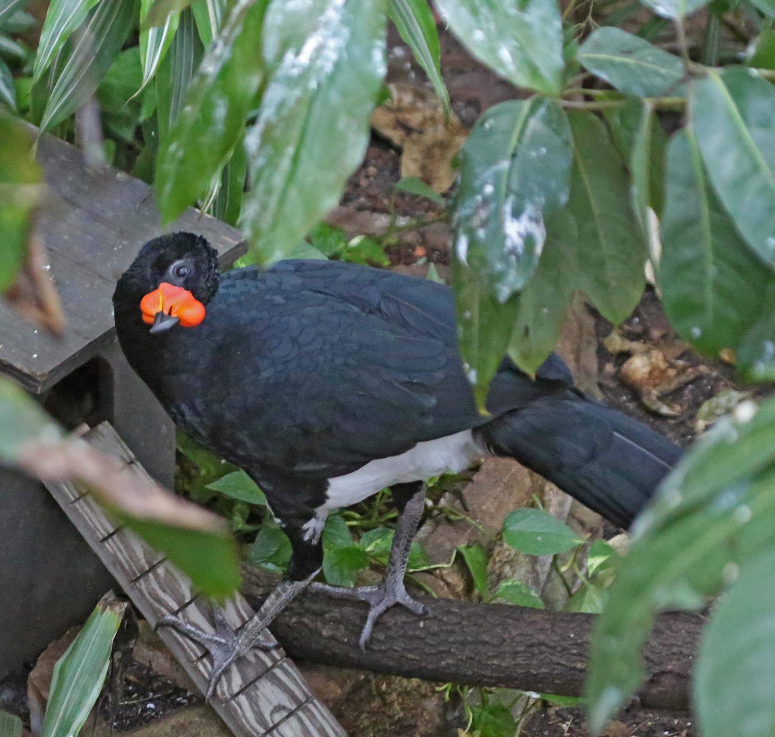 The Yellow-knobbed Curassow is found in the forests and woodlands in Columbia and Venezuela. Both sexes are mostly black but the male has a fleshy yellow knob at the base of its bill.