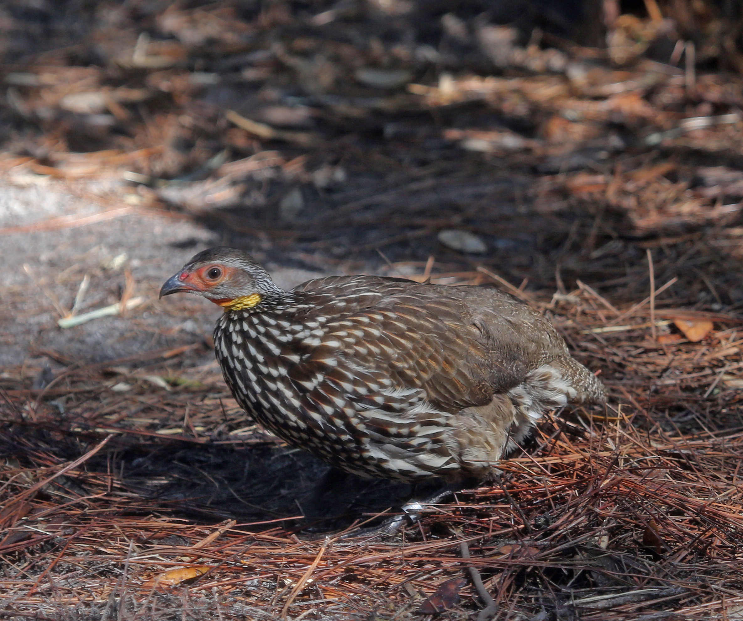 The Yellow-necked Francolin or Yellow-necked Spurfowl is found in Africa. Diet is mainly seeds and a small number of insects.