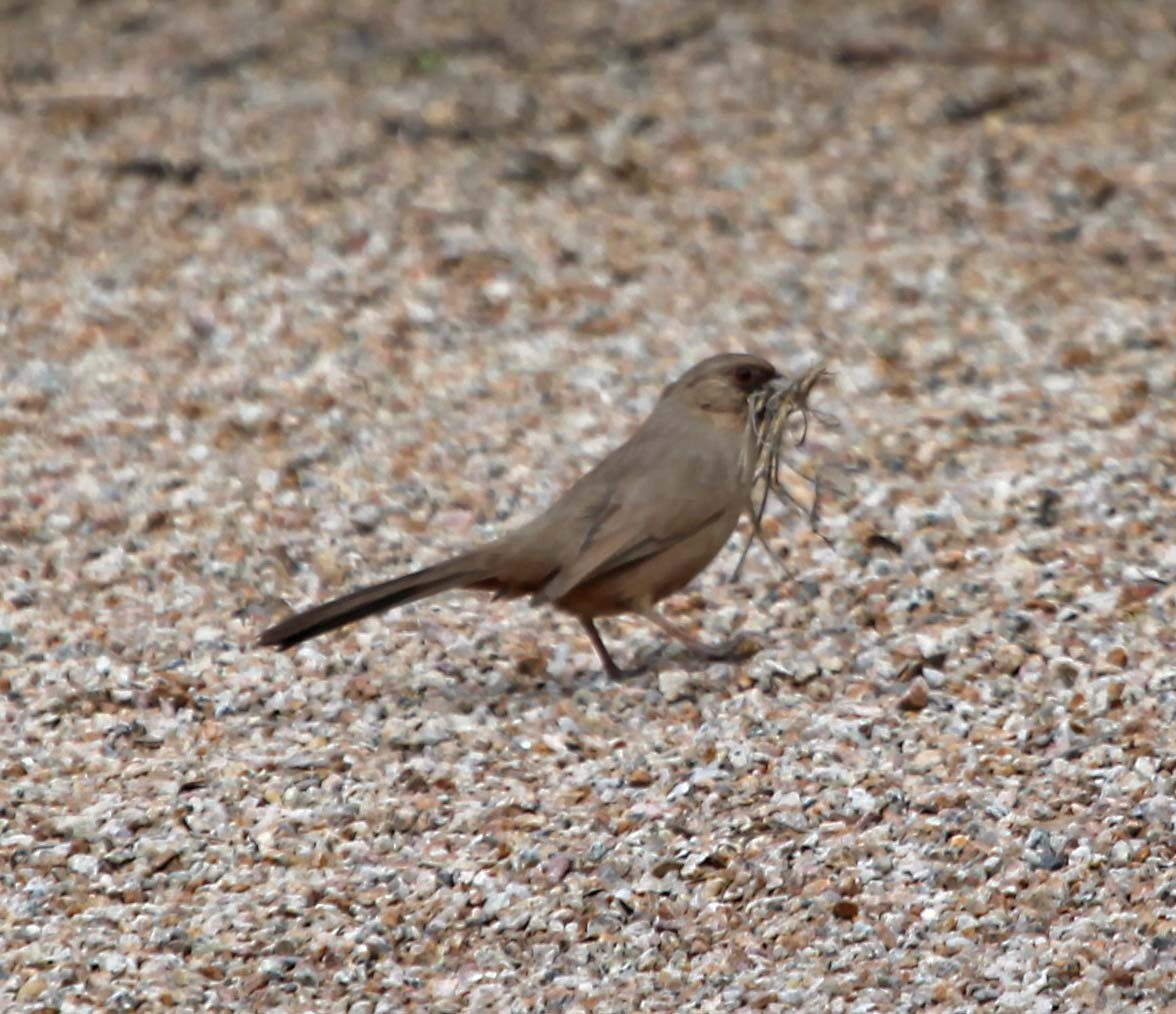 Abert's Towhees are mostly found in Arizona. They are similar to the Canyon and California Towhee, but their face is dark. They forage for seeds around brush and will sometimes eat grubs.