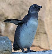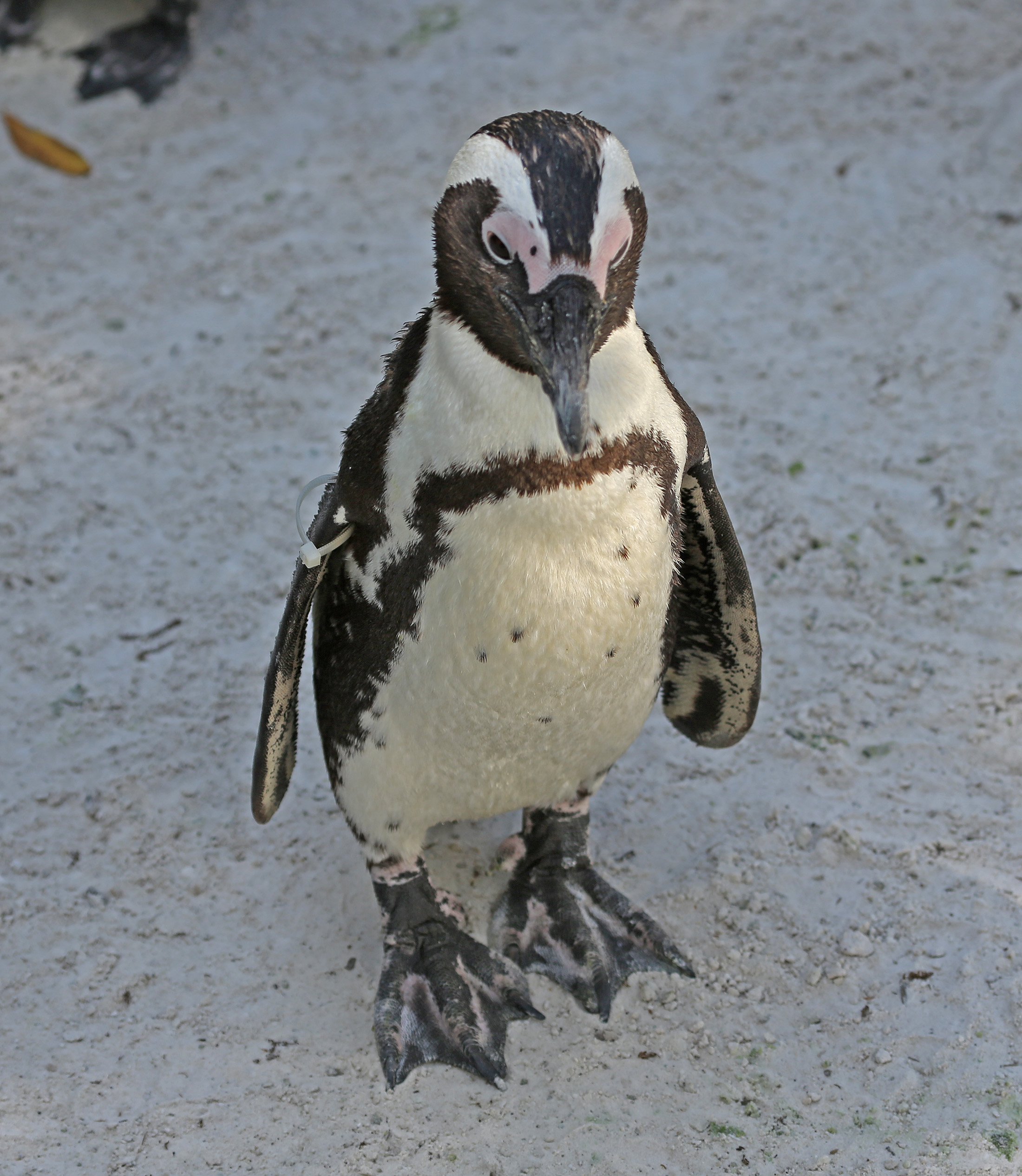 The African Penguin is also known as the Jackass Penguin and the Black-footed Penguin. Their 'braying' sounds like a donkey hence the name Jackass Penguin. They are found in southern African waters at the Cape of Good Hope and Namibia.