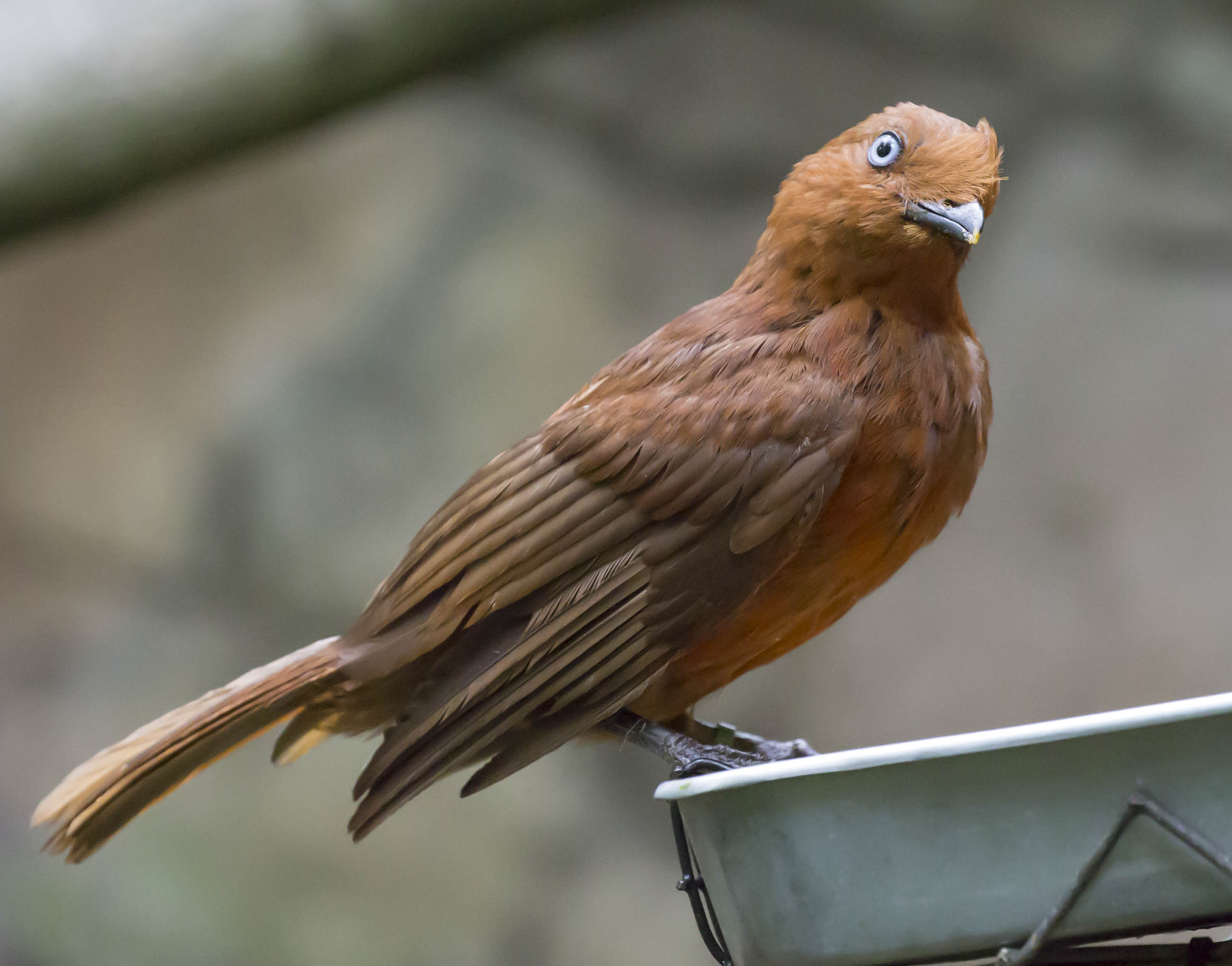 The Andean Cock-of-the-rock is found in the cloud forest of the Andes in Venezuela, Colombia, Ecuador, Peru and Bolivia. They mostly eat fruits and insects but will also eat frogs, lizards and army ants. The sexes are dimorphic and look very different.