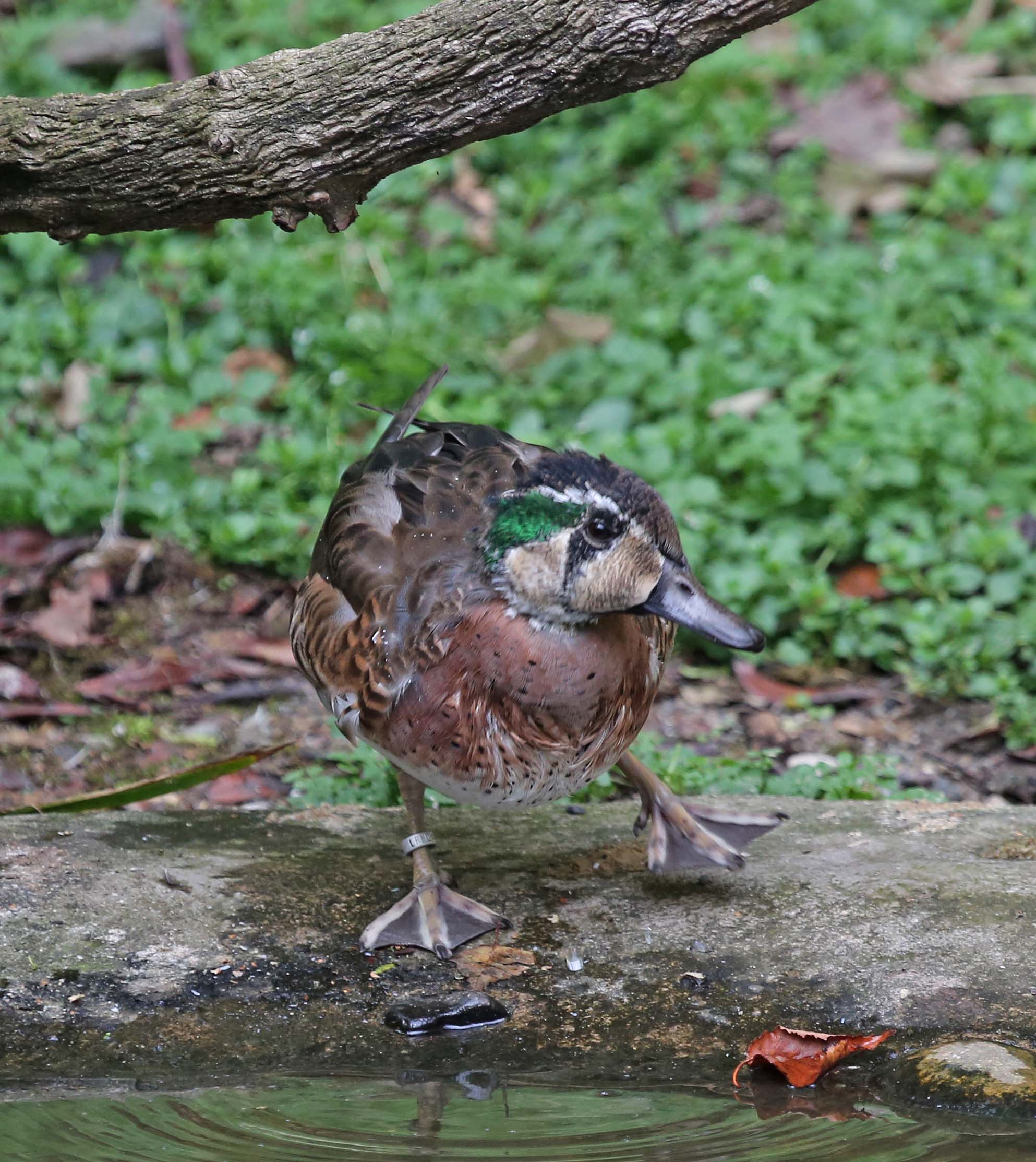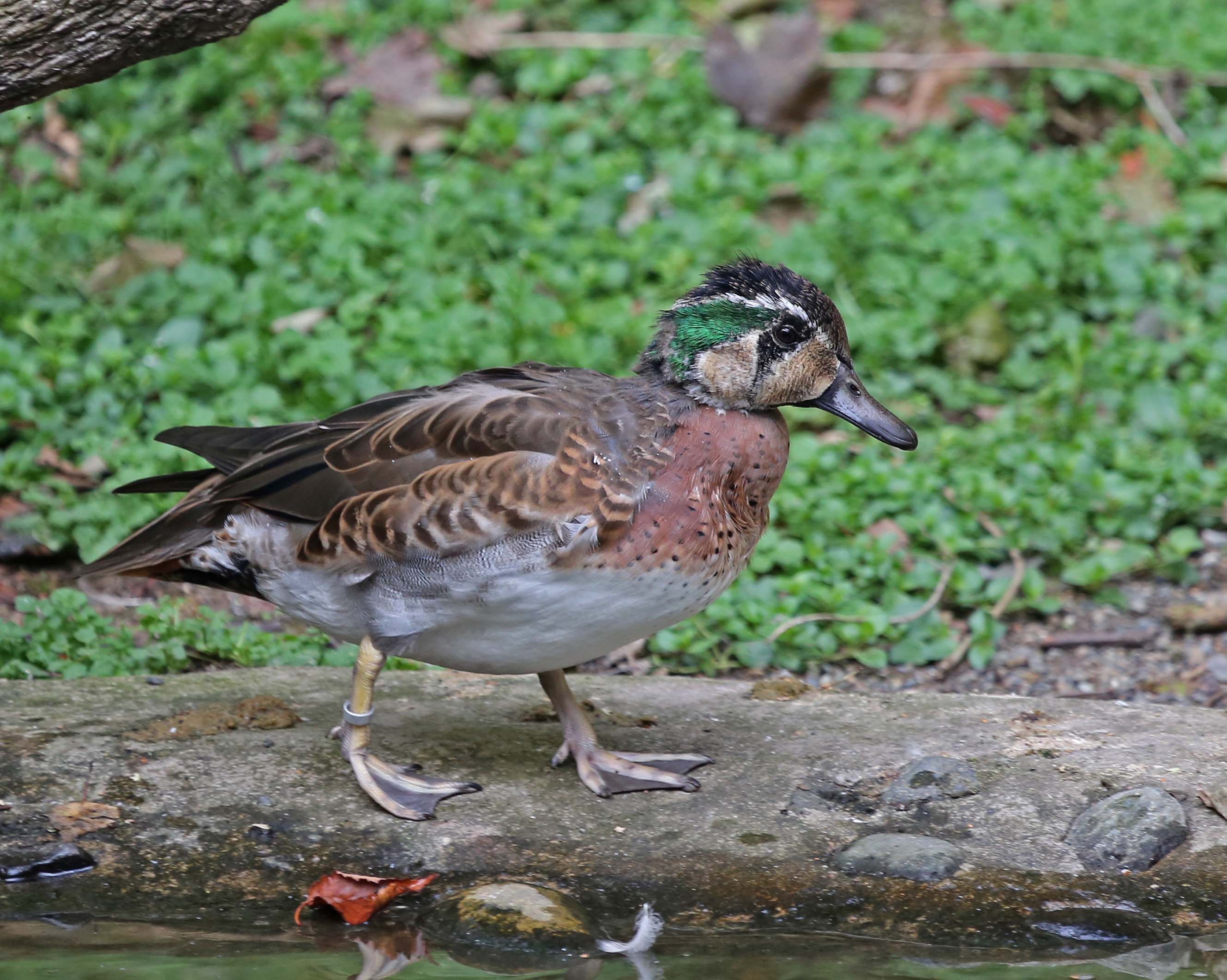 The Baikal Teal is a migratory bird that breeds in Siberia and winters in South Korea, Japan, Taiwan and China. The male plumage it is quite striking. The female can be identified from other teals by the round whitish mark behind the bill.