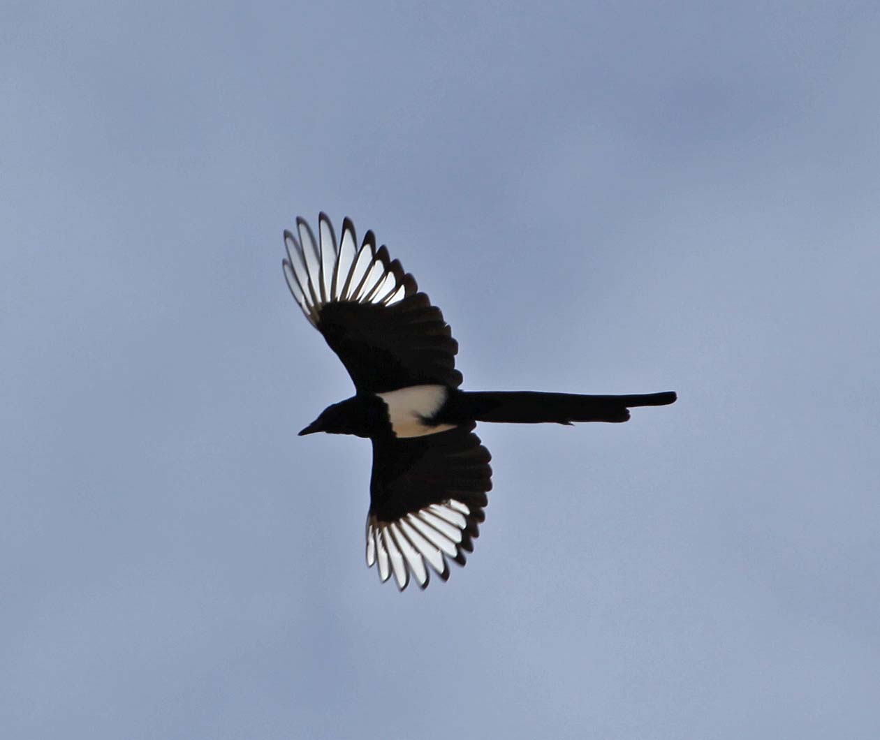 Good example showing the long tail of the Black-billed Magpie