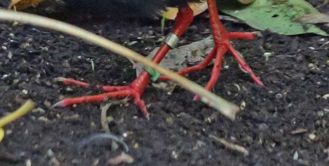 Vocalization: The main call of the Black Crake is a duet, starting with a throaty chattering krrrok-kraaaa. The response is a dove-like cooing coo-crr-COO.