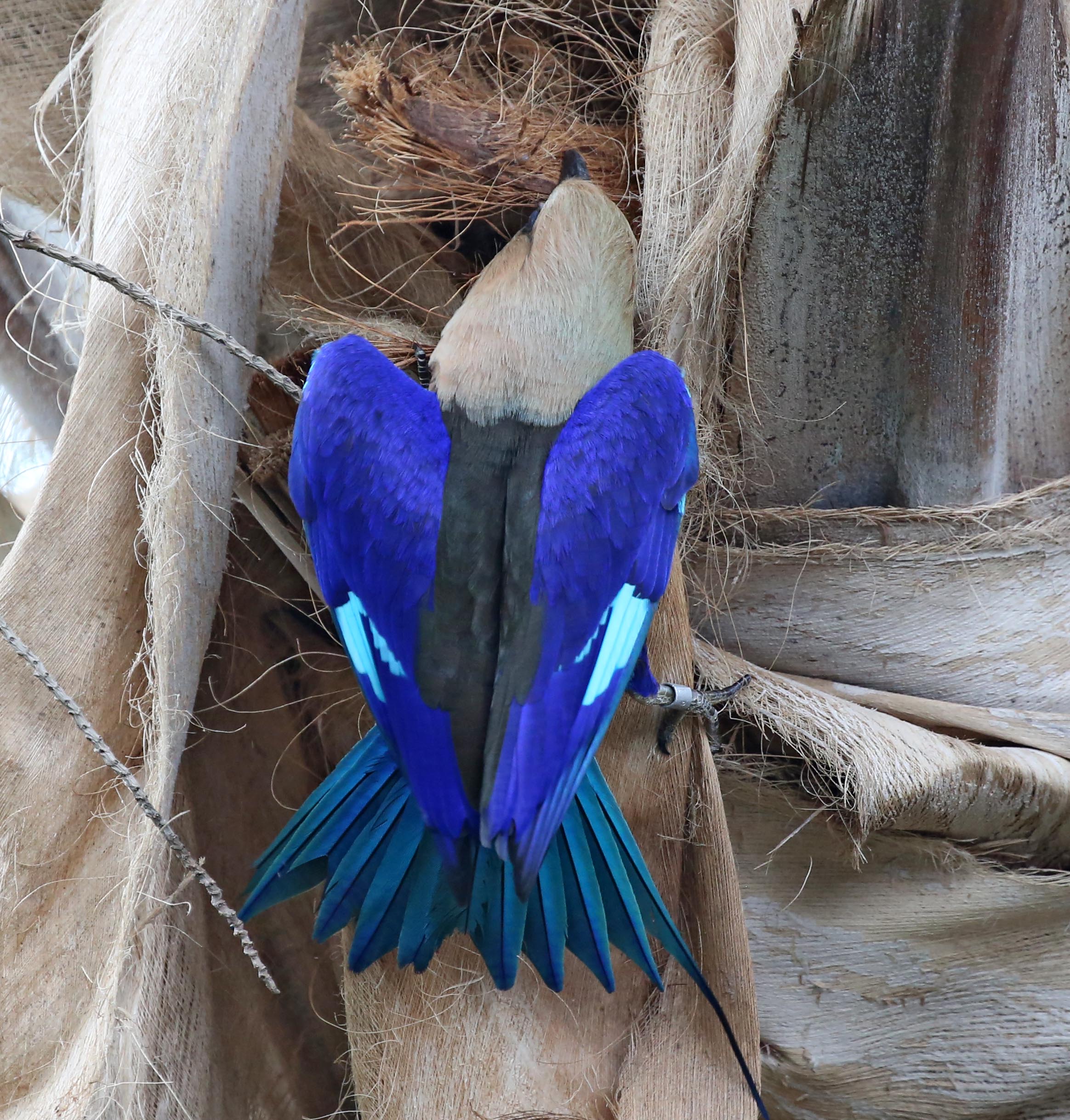 The Blue-bellied Roller is found in Africa. They are found in open country where they perch on trees, post or overhead wires. They eat grasshoppers and other large insects.