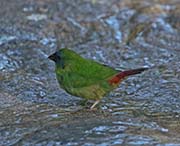 The Blue-faced Parrotfinch is found in north-eastern Australia, Japan, Indonesia and other islands in Southeast Asia. They have also been introduced into France. They are a mostly green blue with a red tail. The male has more blue on the face.
