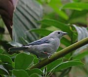 The Blue-gray Tanager is found from Mexico south to Bolivia and northern Brazil. There are 13 subspecies of this bird, and the plumage coloration varies between the subspecies. Some Blue-gray Tanagers are bluer, others grayer and the wing coverts can be tinged in lavender, blue, or white. Bills are thick. Juveniles are duller in color.