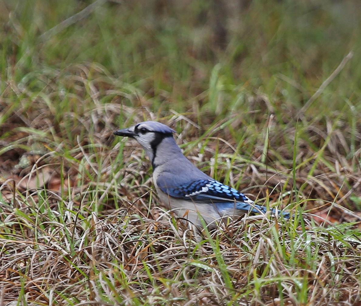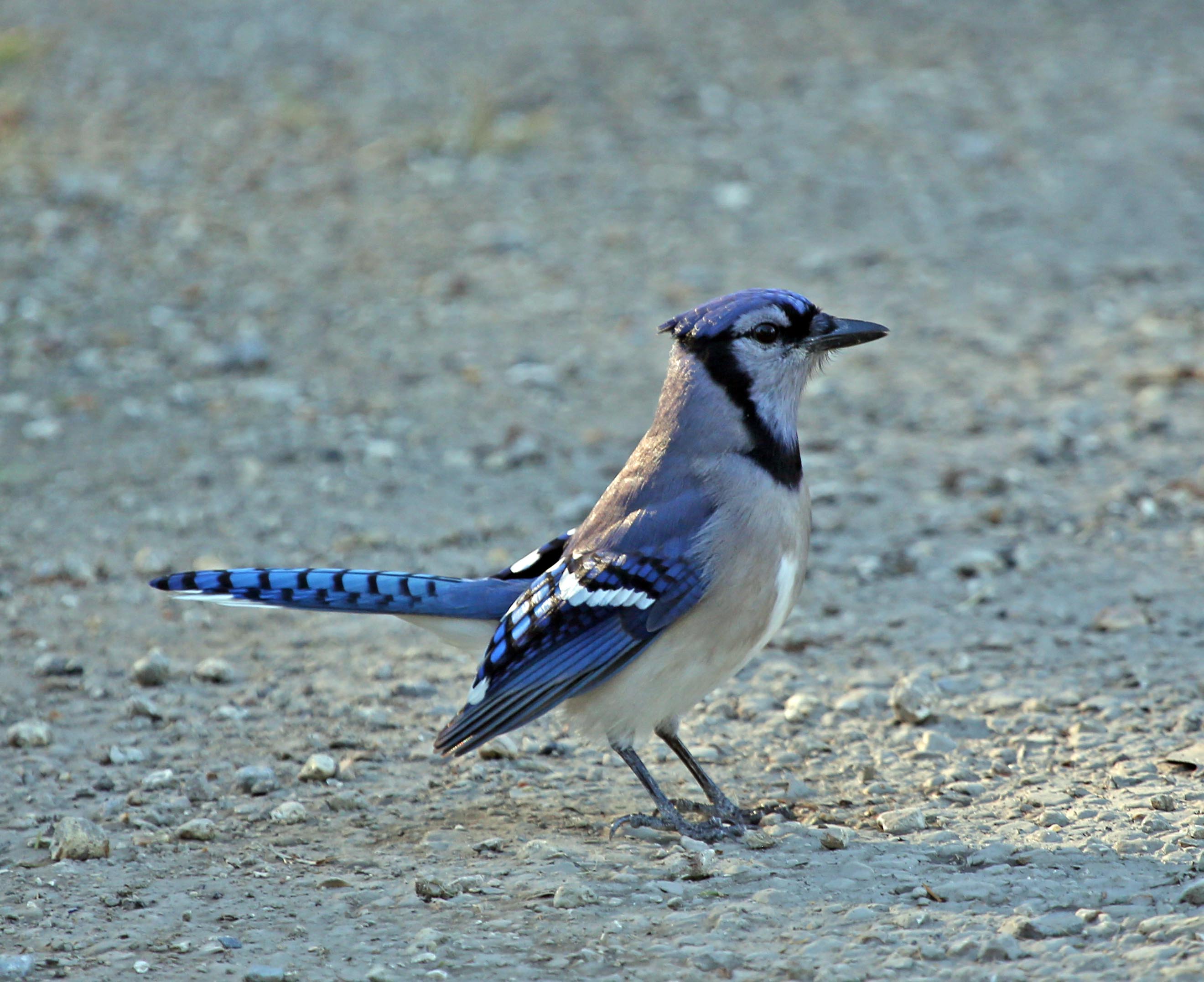 The Blue Jay is distributed over the Eastern and Central U.S. The Blue Jay has a pronounced crest on its head. They eat a variety of plants (seeds, grain, fruits, bread, etc.) and small invertebrates, etc. They are intelligent birds.
