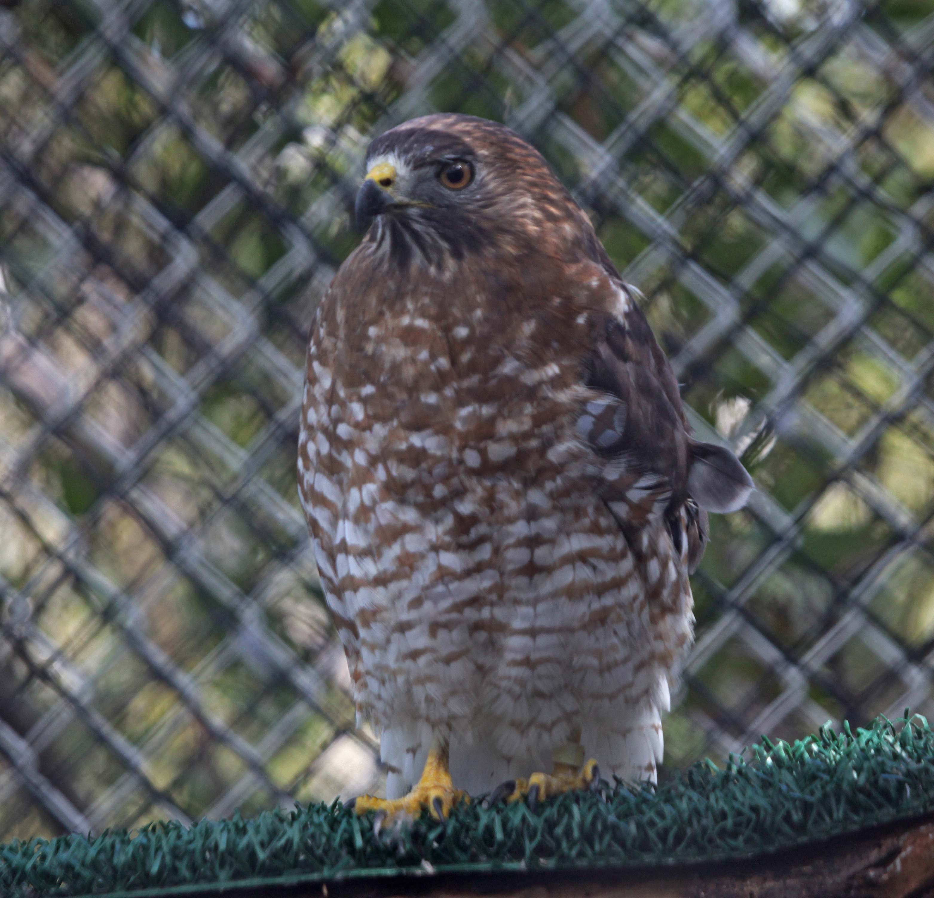 The Broad-winged Hawk breeds in the Eastern half of the U.S. and winters in southern Mexico, Central America, and northern South America. They are one of the few birds of prey that migrate in large flocks or "kettles". The kettles can number in the tens of thousands. Broad-winged Hawks eat amphibians, insects, mammals and juvenile birds.