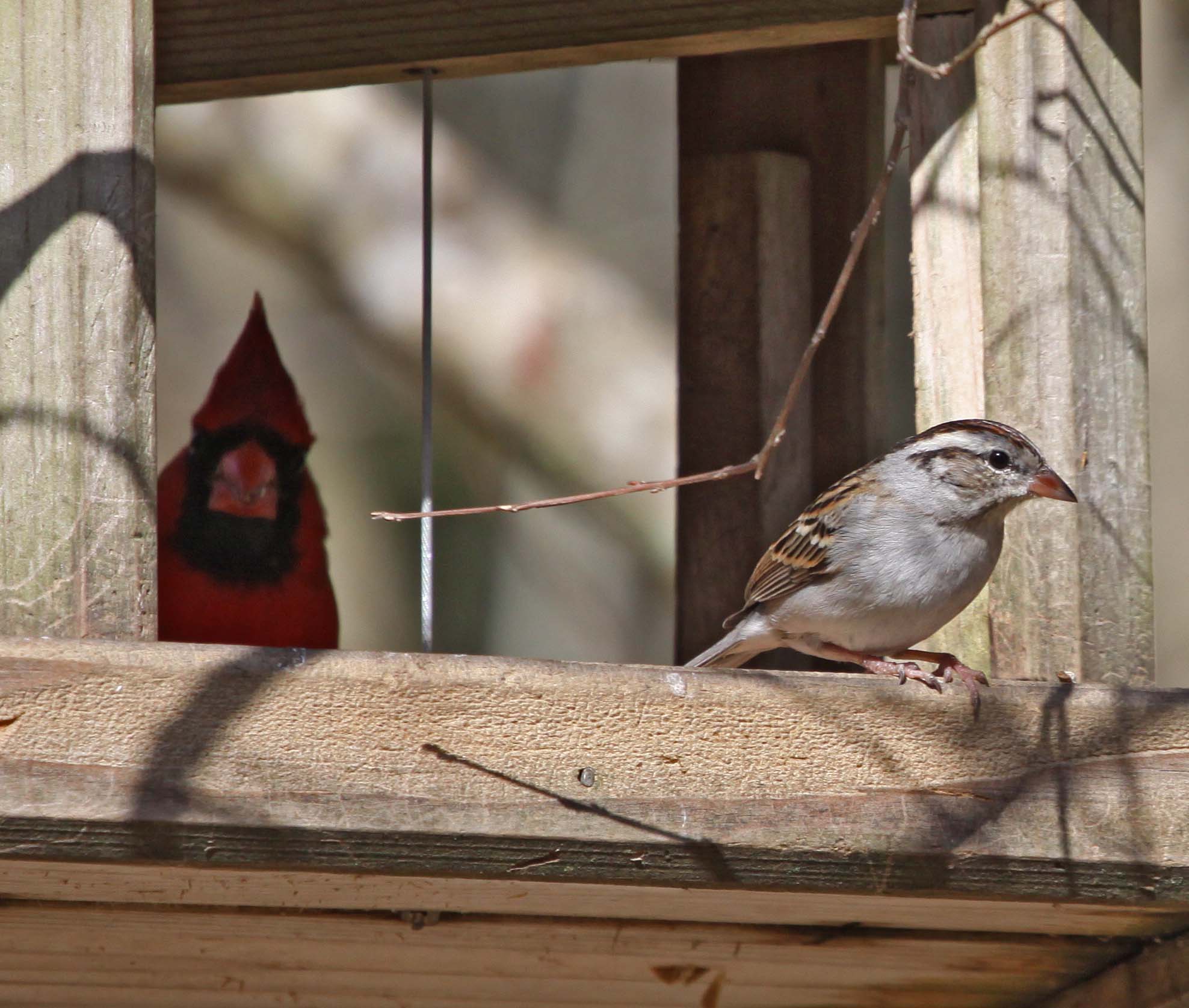 The Chipping Sparrow it noted for its flight call. It makes a fast trill when it is flushed. They are found throughout the U.S., Canada and Mexico. They breed through much of their range. They forage on the ground looking for seeds and crumbs of most any kind of food.