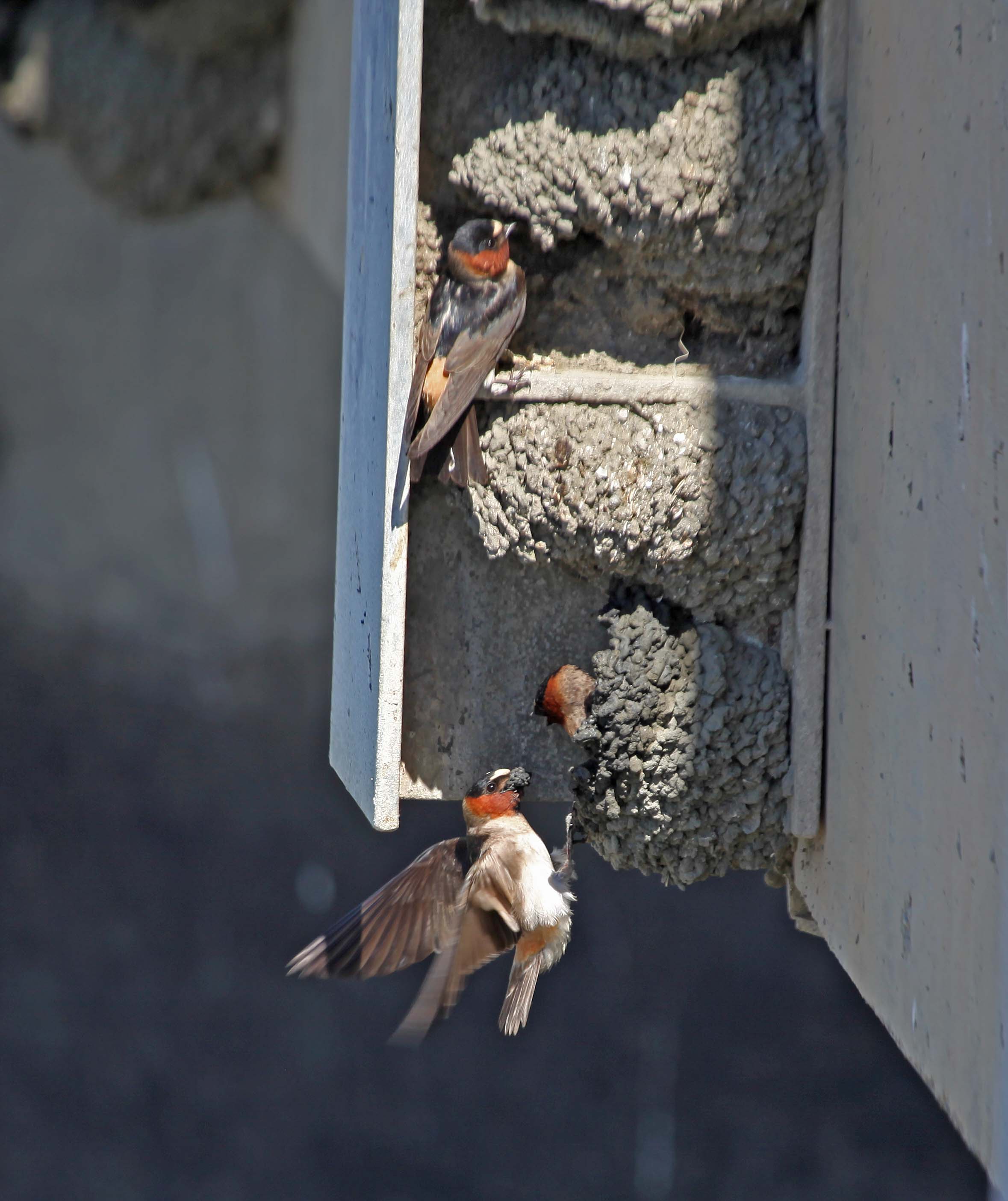 Barn Swallows on the left, lower center is Cliff Swallow, far right Tree Swallow