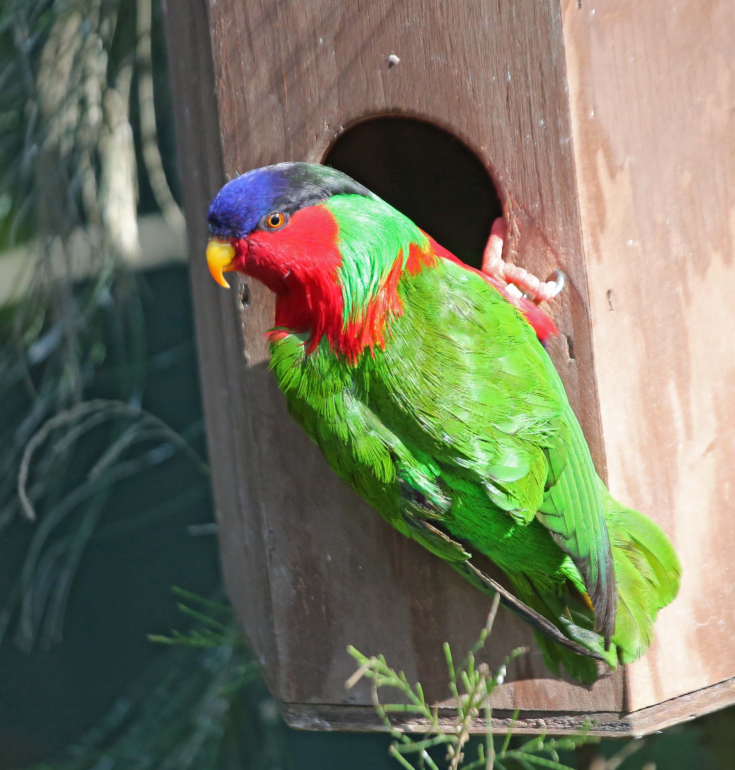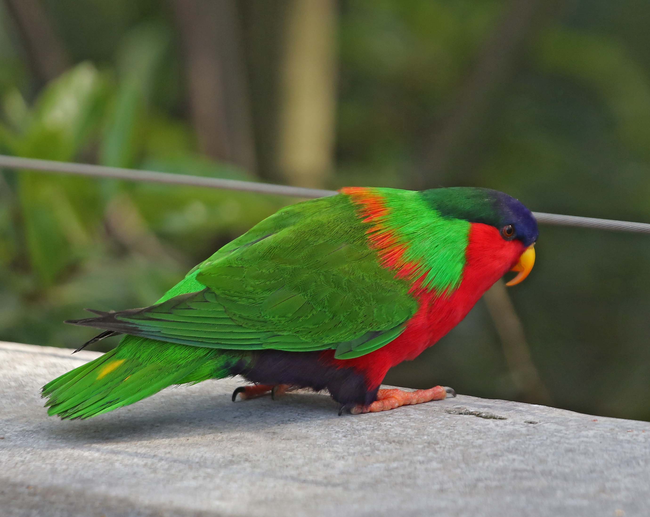 The Collared Lory is a species of parrot that is endemic to the islands of Fiji. Males and females look similar but females have a paler crown.