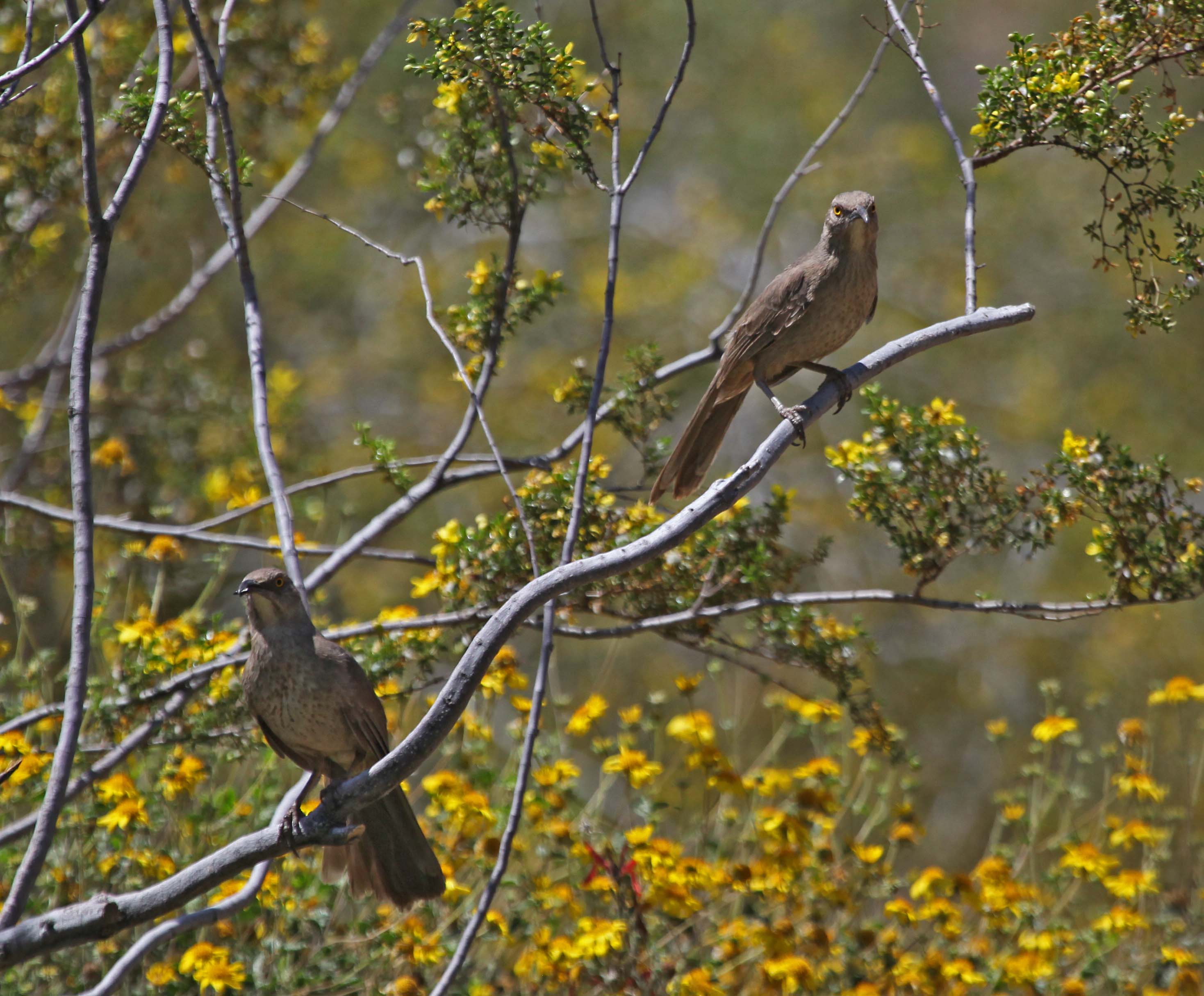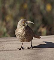 The Curve-billed Thrasher is found throughout the southwest in the U.S. It roosts in tall trees, cactus, etc. They eat ground-dwelling insects, seeds, and berries.
