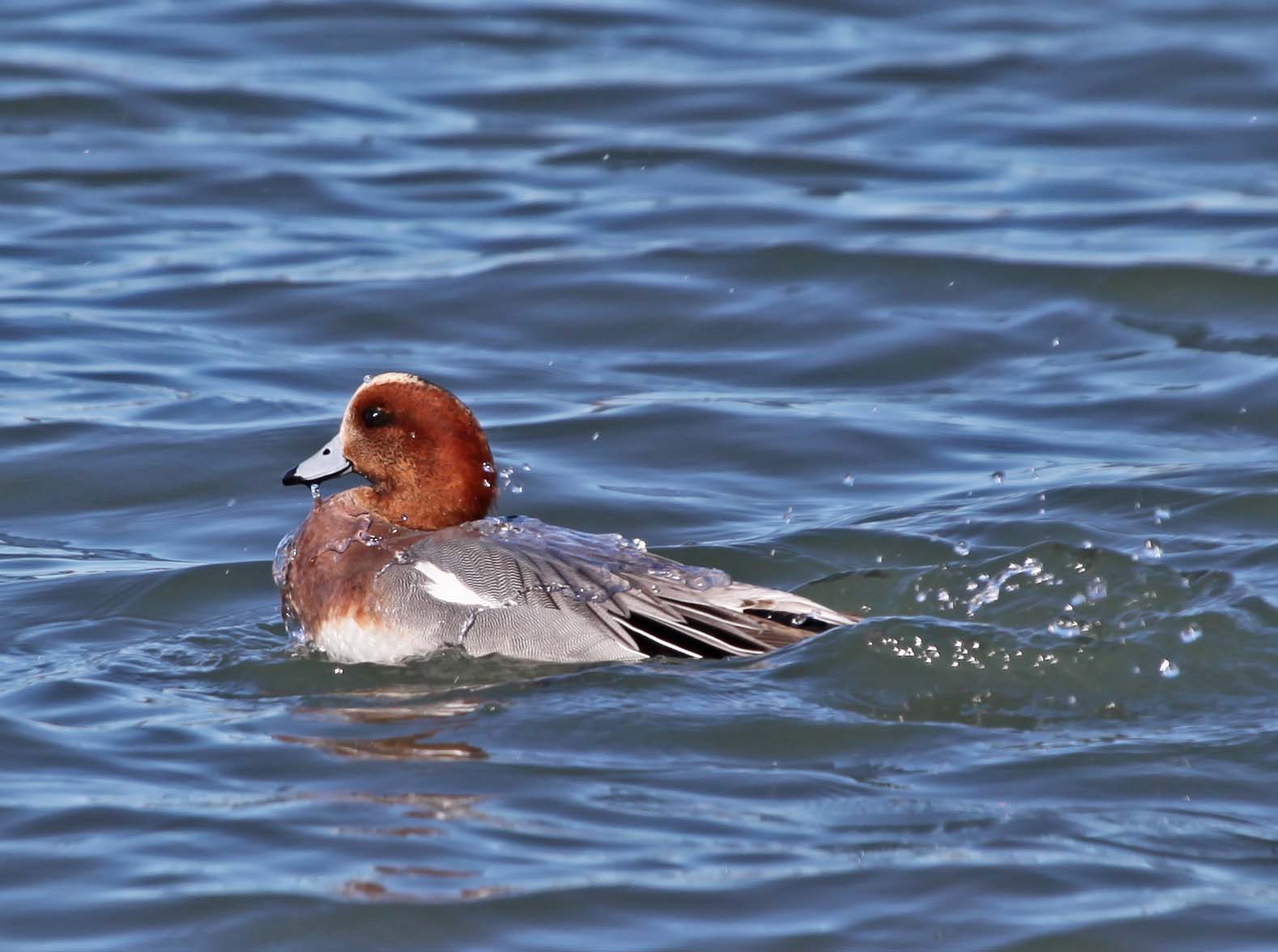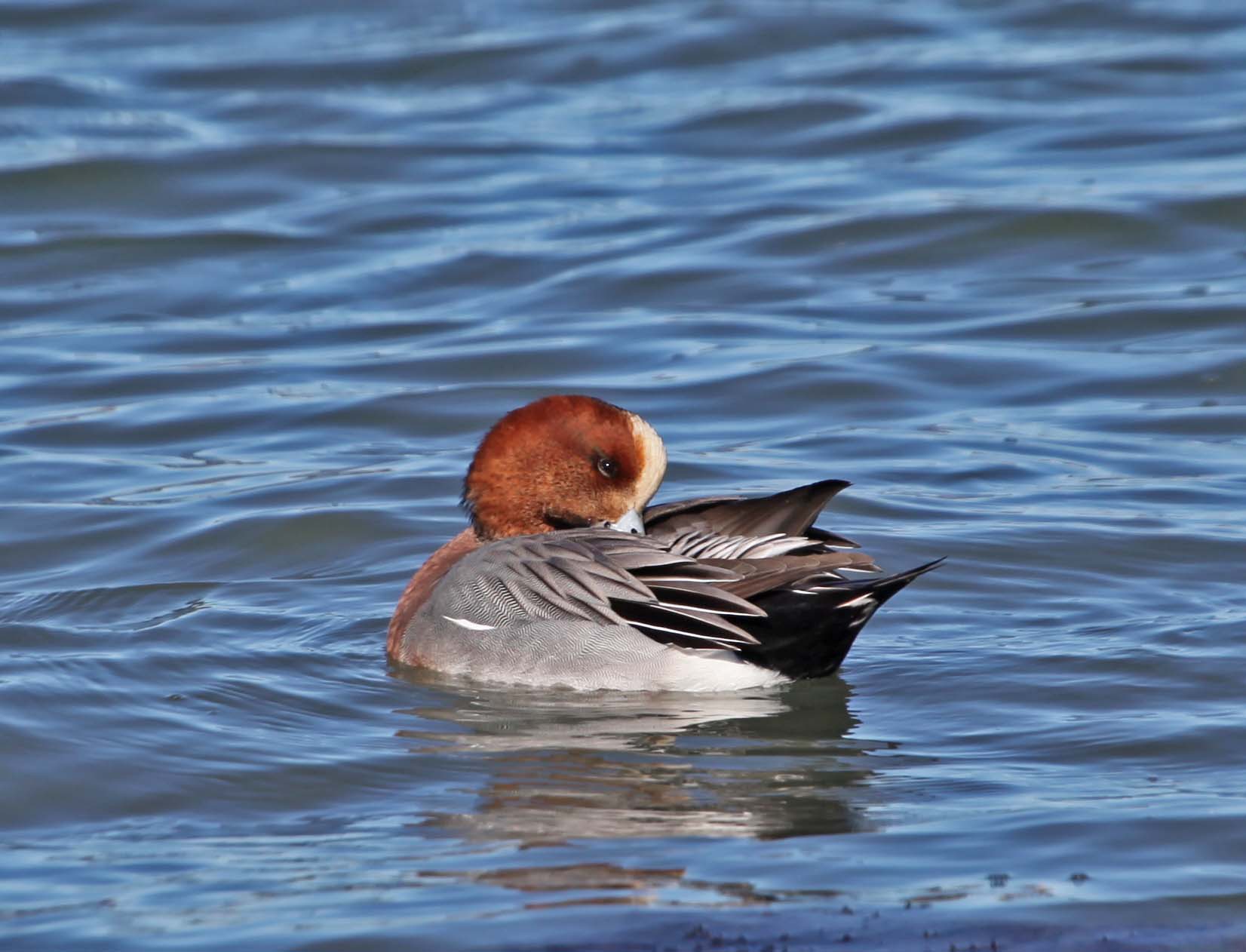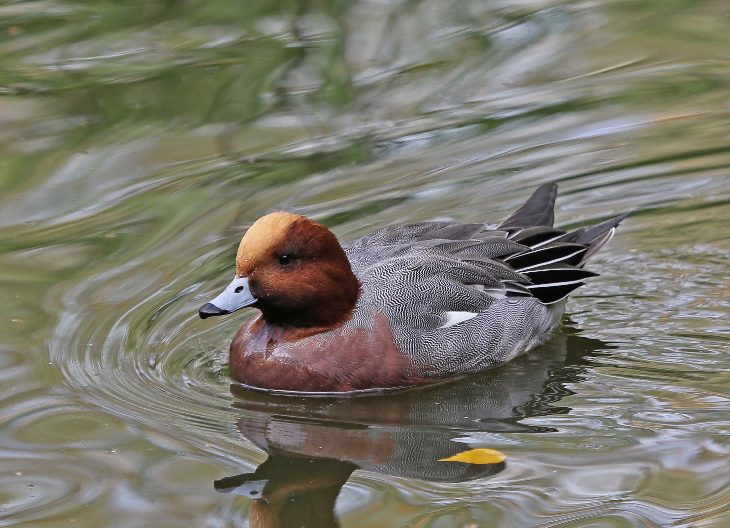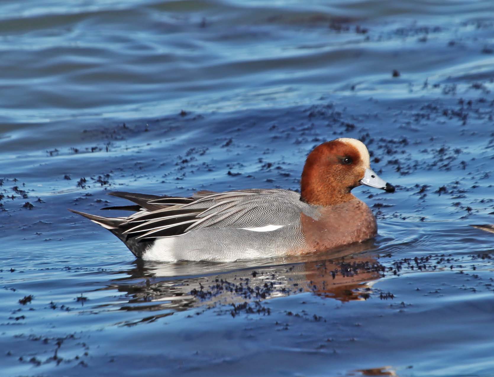 Male Eurasian surrounded by American Wigeons