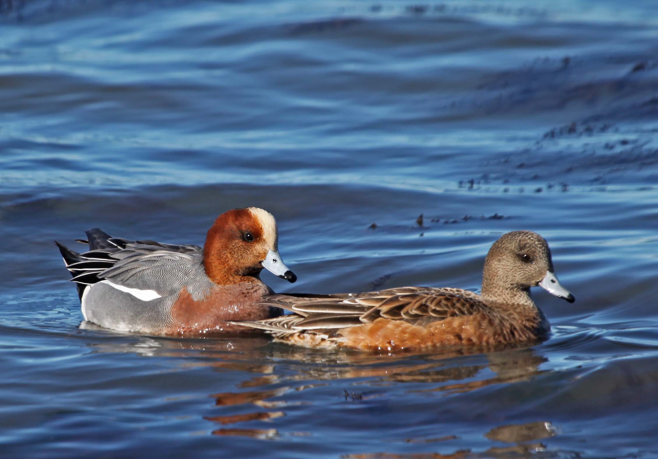 Male Eurasian - female American Wigeons at the right