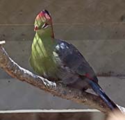 Fischer's Turaco is found in Africa in Kenya, Somalia and Tanzania. They primarily eat fruit but will also eat flower buds, and young plant shoots.