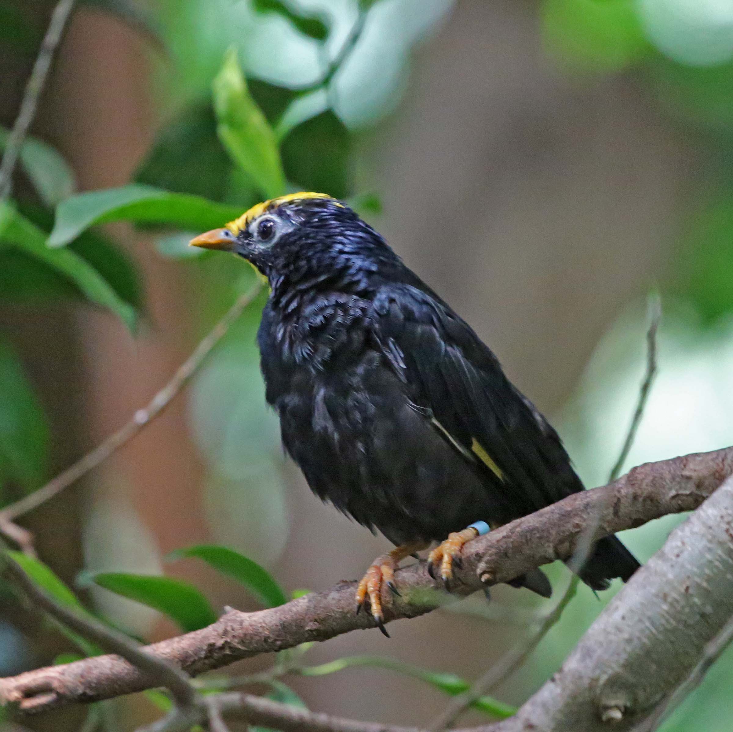 The Golden-crested Myna is found from India to Vietnam and northern Malaysia. The sexes are similar but the male has more yellow on its head.