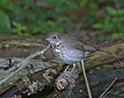 The Gray-cheeked Thrush (U.S.) or Grey-cheeked Thrush breed in Canada, Alaska and eastern Siberia. They winter in northern South America. Their upperparts are brownish gray and the underparts are whitish gray with brown streaks. They have grey cheeks and pink legs. They eat insects and other arthropods.