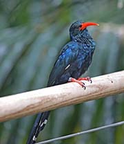 The Green Woodhoopoe is also known as the Green Wood Hoopoe and formerly known as the Red-billed Wood Hoopoe. They are common in the forest, woodland and suburban gardens of most of sub-Saharan Africa. They eat insects including termites.