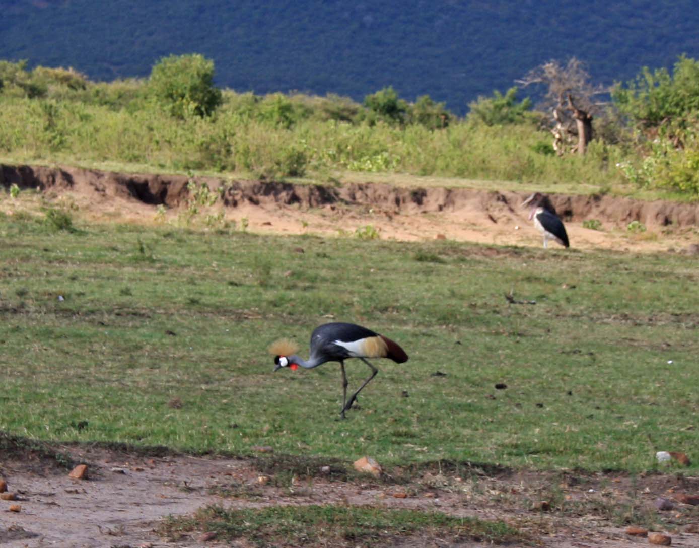 Grey Crowned Cranes are monogamous birds that pair for life. Pairs will stay together even in the middle of a large flock.