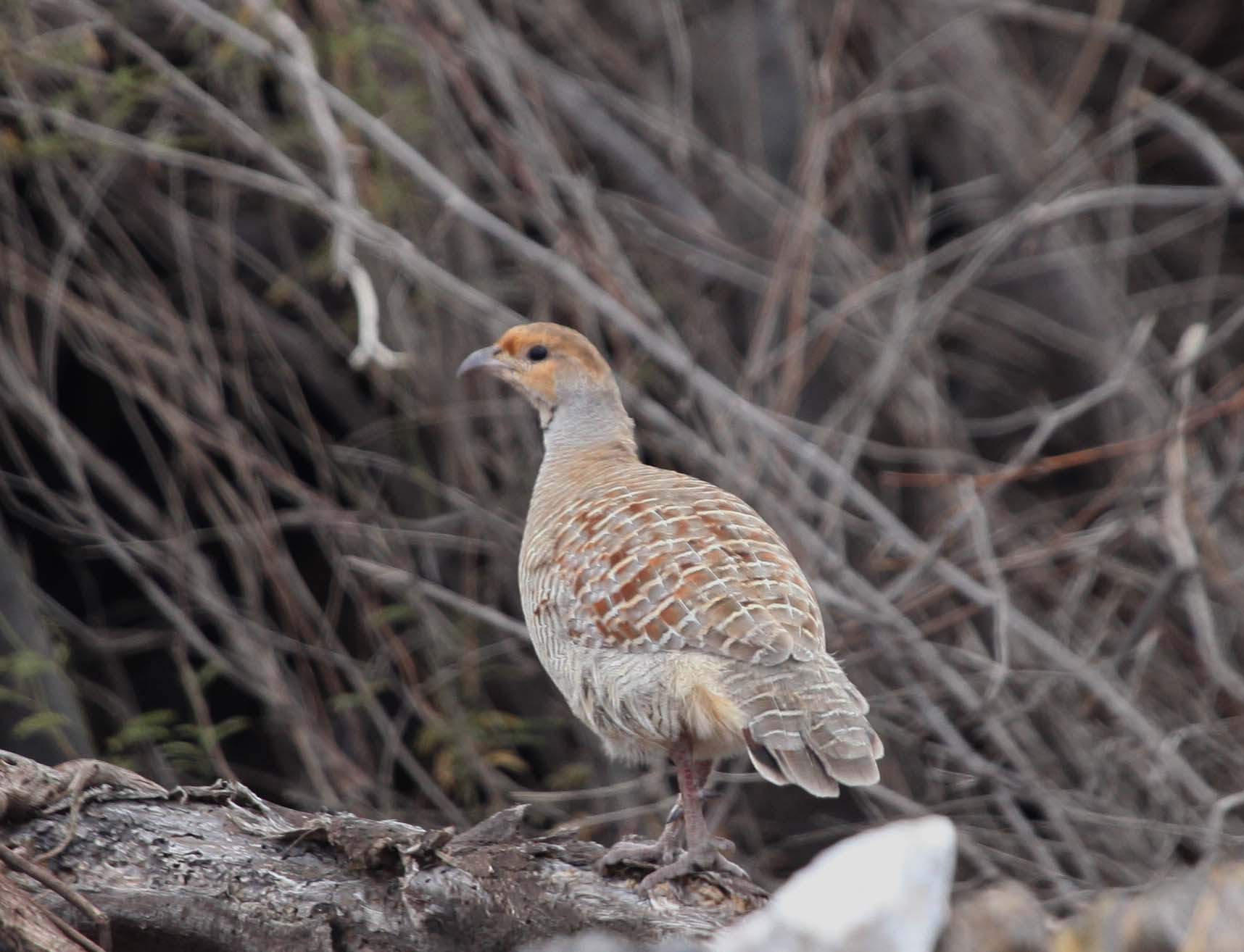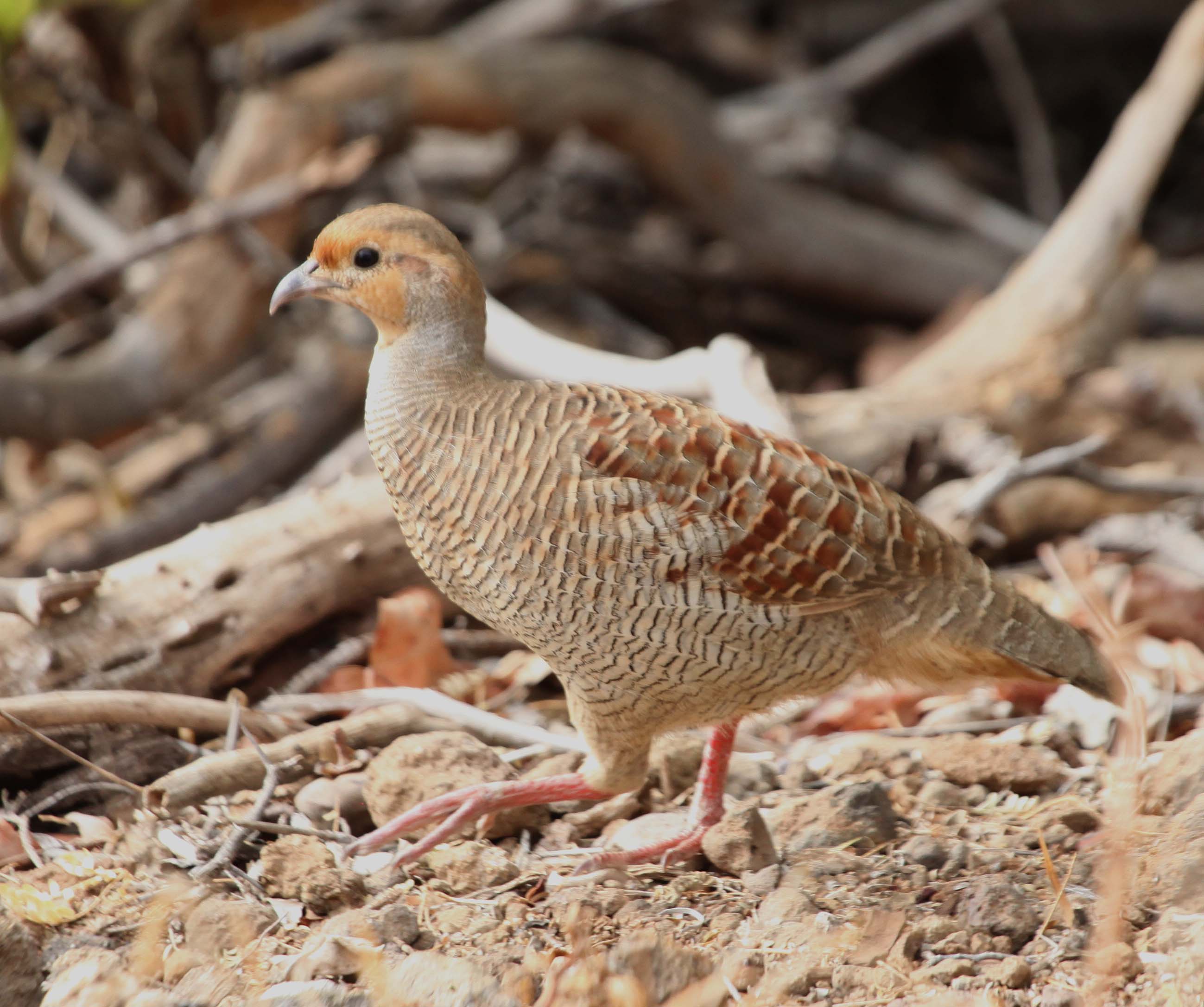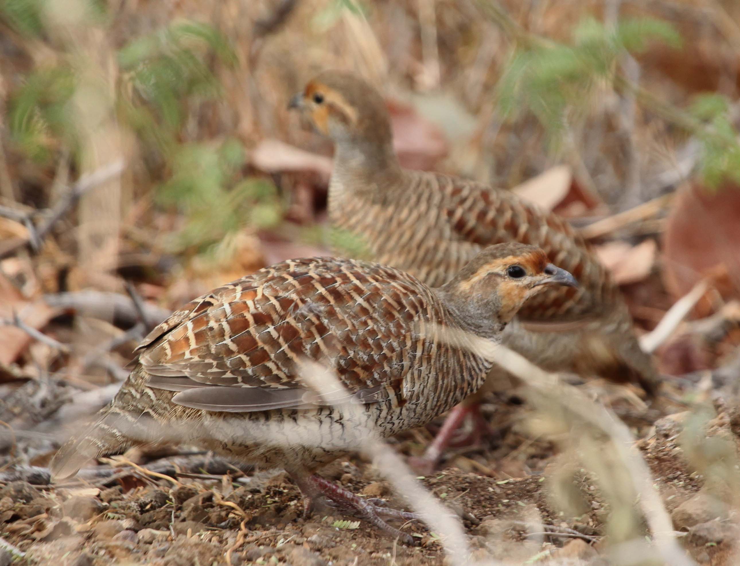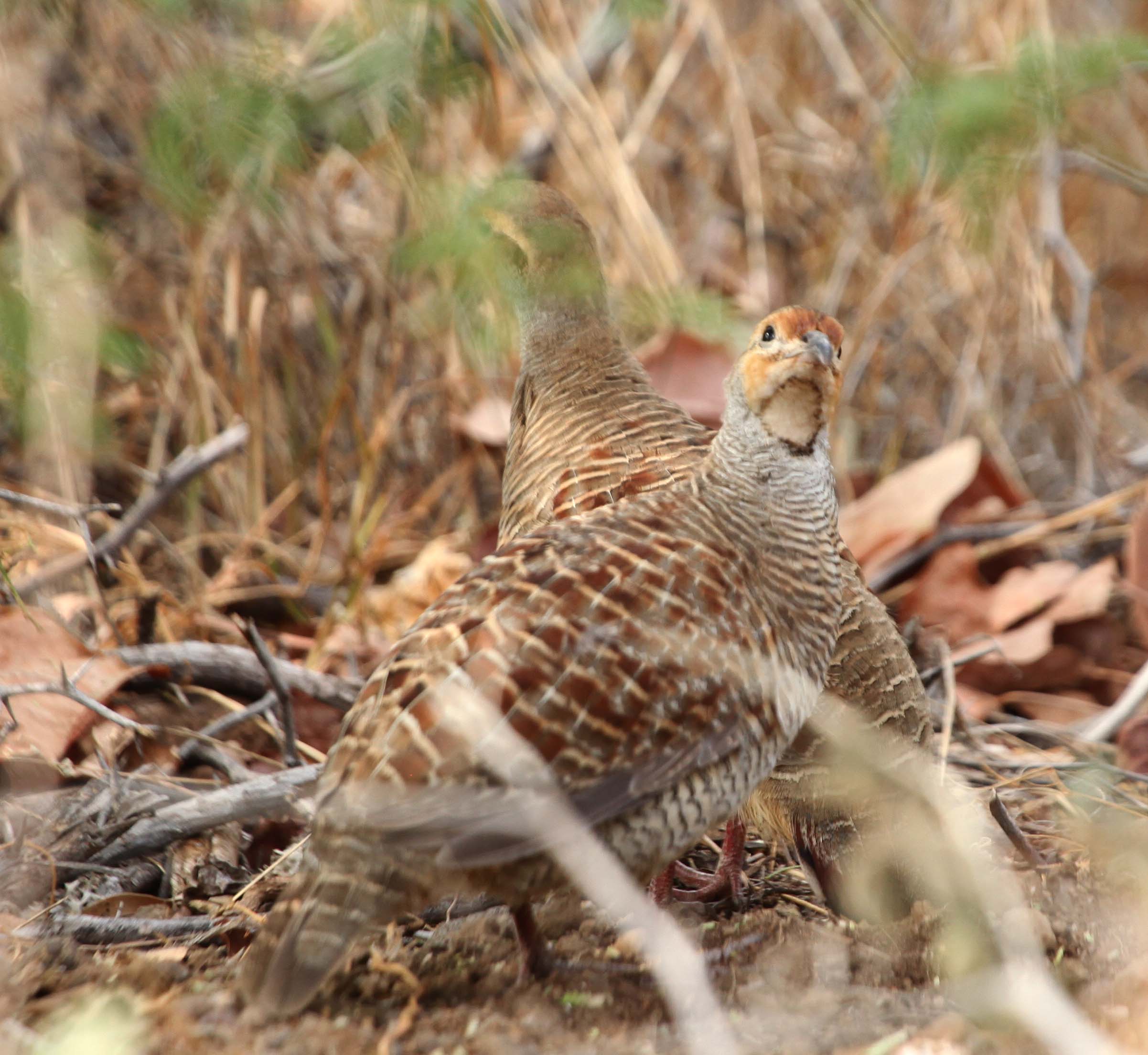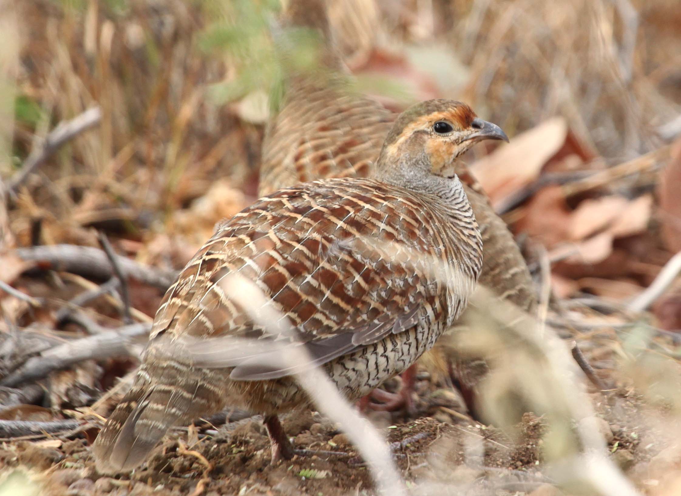 The Grey Francolin is found in the plains and drier parts of South Asia. Diet is seeds, plant shoots, berries and insects.
