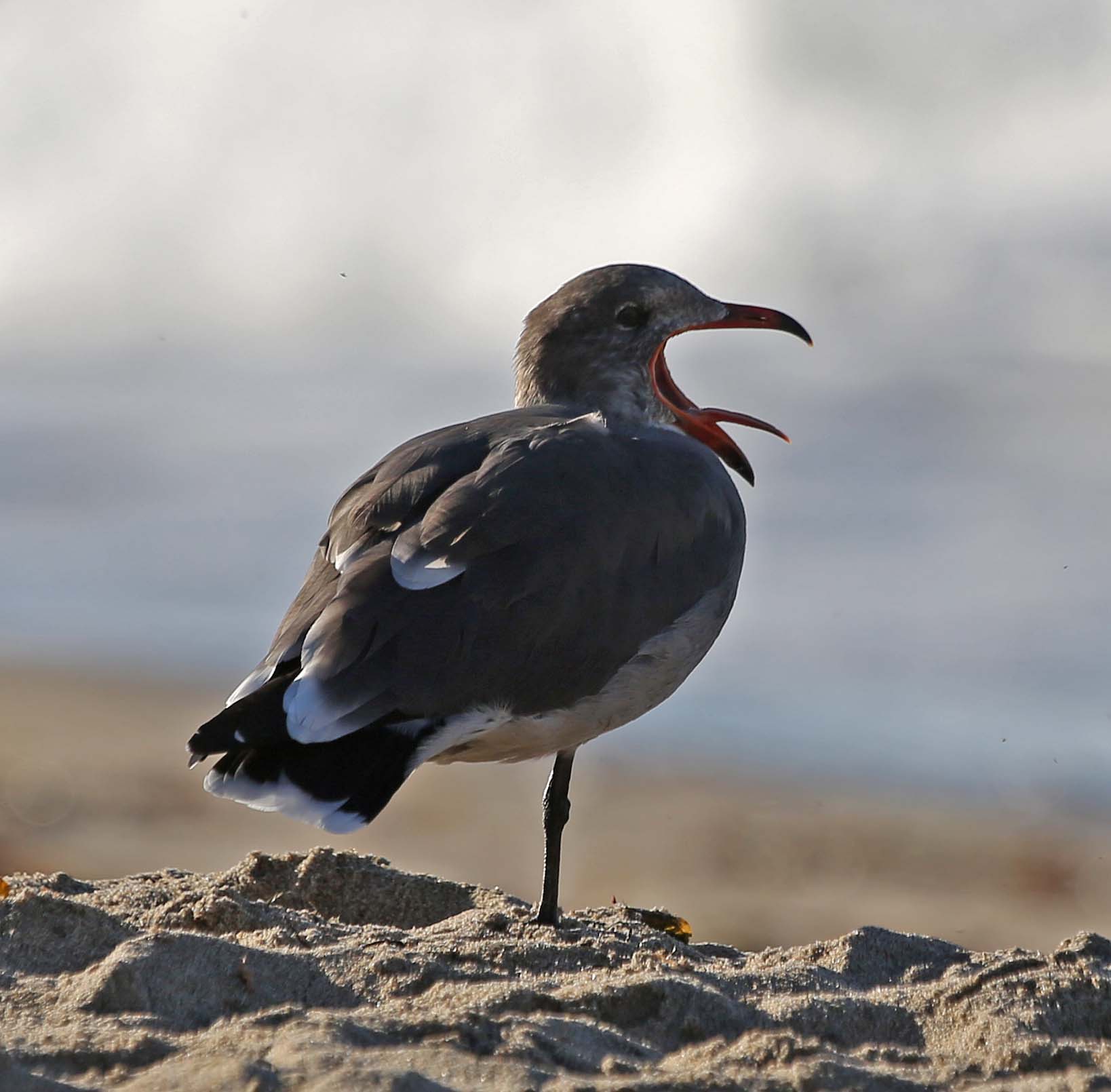 The Heermann's Gull is a Pacific Coast gull that is found in from southwestern British Columbia to Mexico. Nearly all Heermann's Gulls nest on Isla Rasa in the Gulf of California. Heermann's Gulls will sometimes pirate prey from other seabirds, especially Brown Pelicans.
