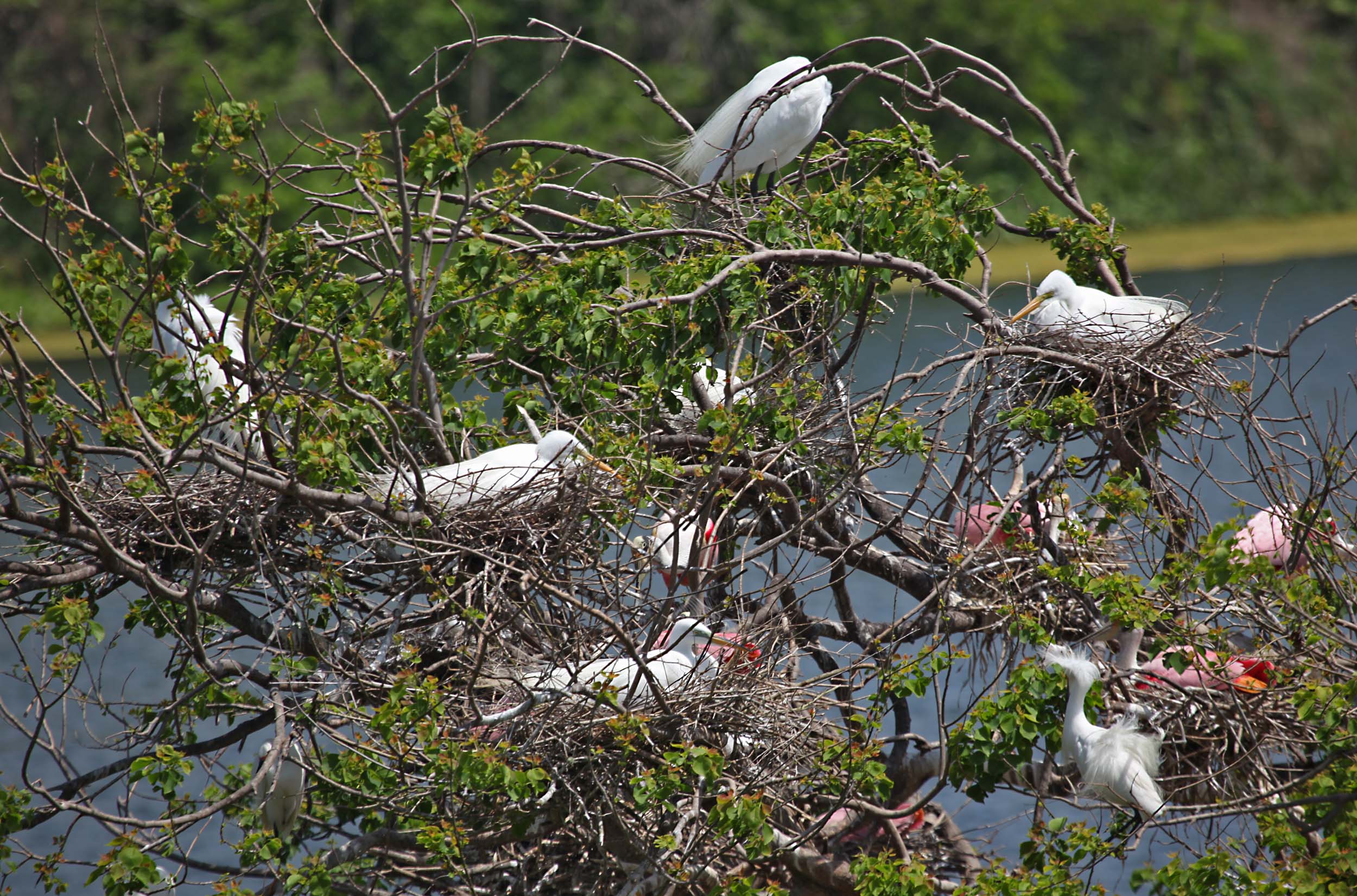 Smith Oaks Rookery- The place was loaded with nesting Roseate Spoonbills. Some of the Spoonbills were quite close. I also saw nesting Great Egrets and some Tri-colored Egrets, Common Moorhens, Northern Cardinals, an alligator, etc. It is definitely a not to miss place in the spring.
