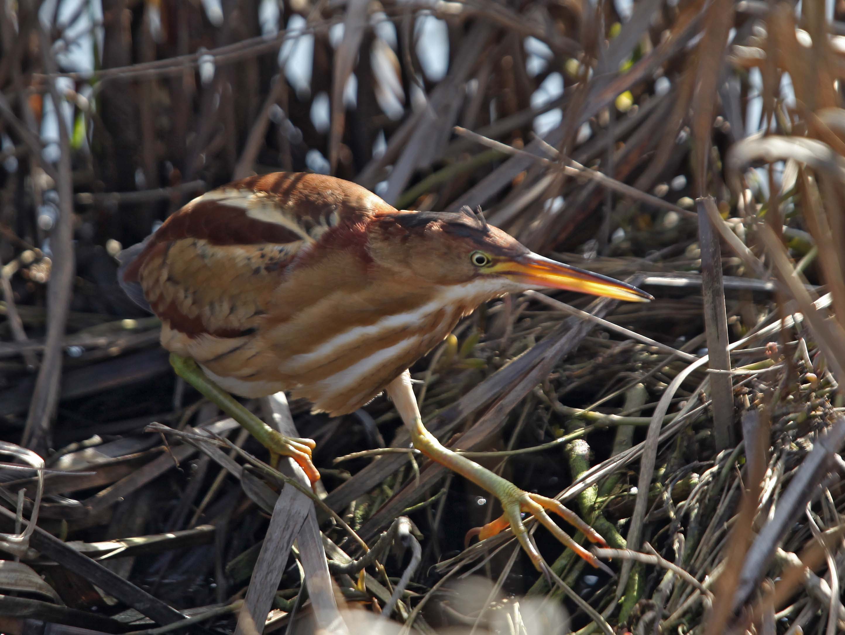 The Least Bittern is the smallest heron found in the Americas. They mostly breed in North America and winter in South America. They are found in fresh and brackish water marshes with tall and dense vegetation.