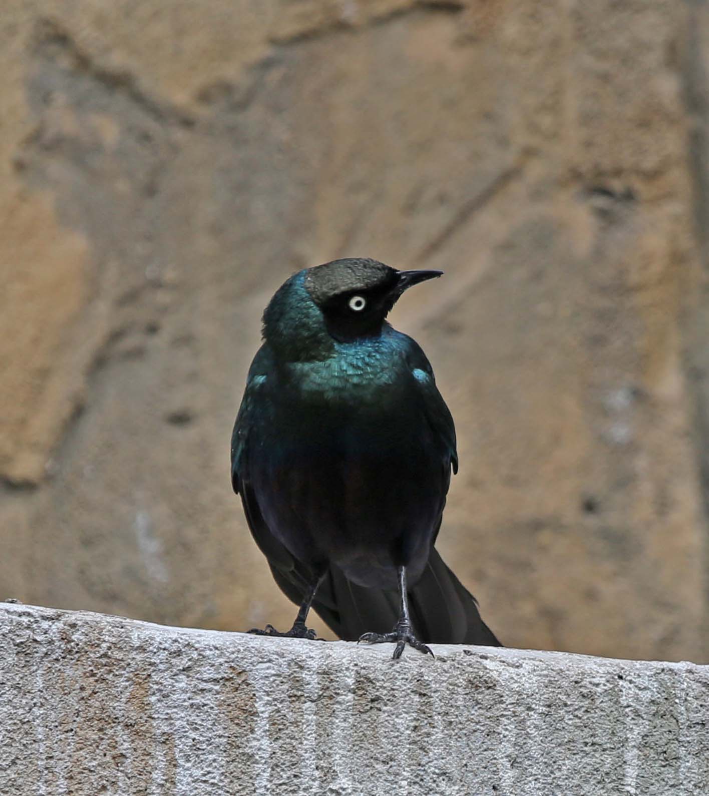 The Long-tailed Glossy Starling is found in tropical Africa from Senegal east to Sudan. The sexes are similar. They are mostly blue-green with a bronze sheen. The wings have prominent black spots and the tail has dark barring. The eyes are creamy colored and the legs and bill are black. The tail adds an additional 13.4 in (34 cm) to the length. Juveniles are duller with a more browish tone. They are noisy with a harsh grating call.