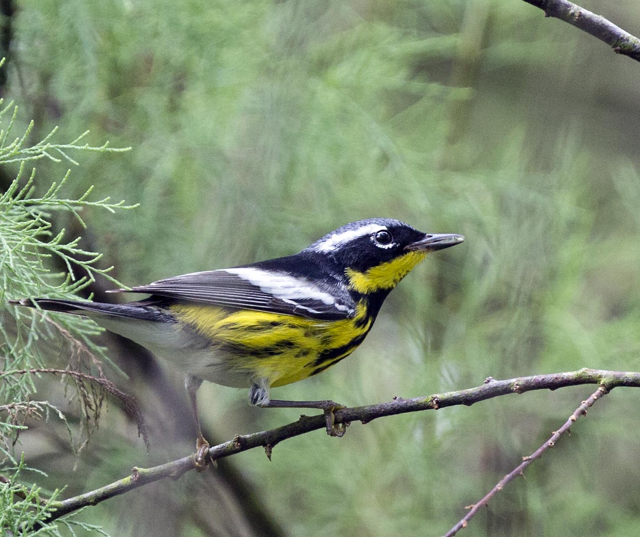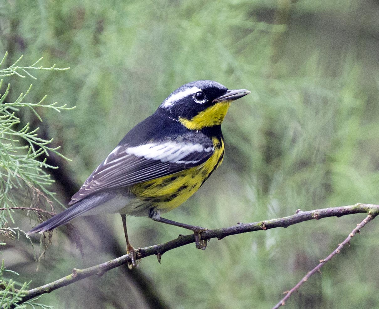 The Magnolia Warbler is a small warbler that breeds in northeastern U.S. and Canada and summers in Mexico and the Caribbean. The 1st year warbler shown below was a rare visitor to the San Francisco Bay Area.