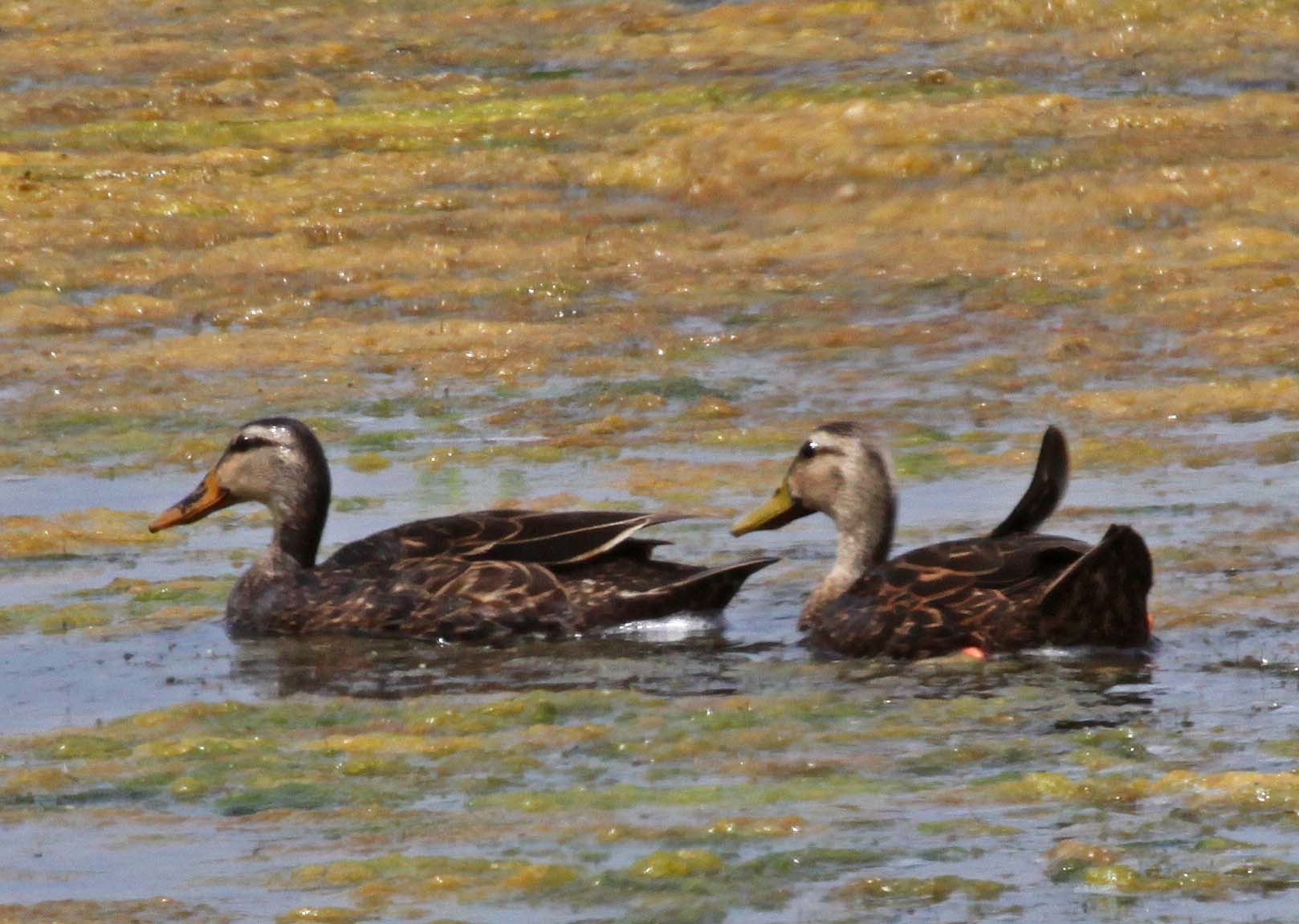 Mottled Ducks are medium sized dabbling ducks. They look similar to the female Mallard, but the head has more of a buffy color, and have a black spot on the gape (below the bill). They are also not as common as Mallards and are mainly found on the Gulf Coast, Florida and Mexico.