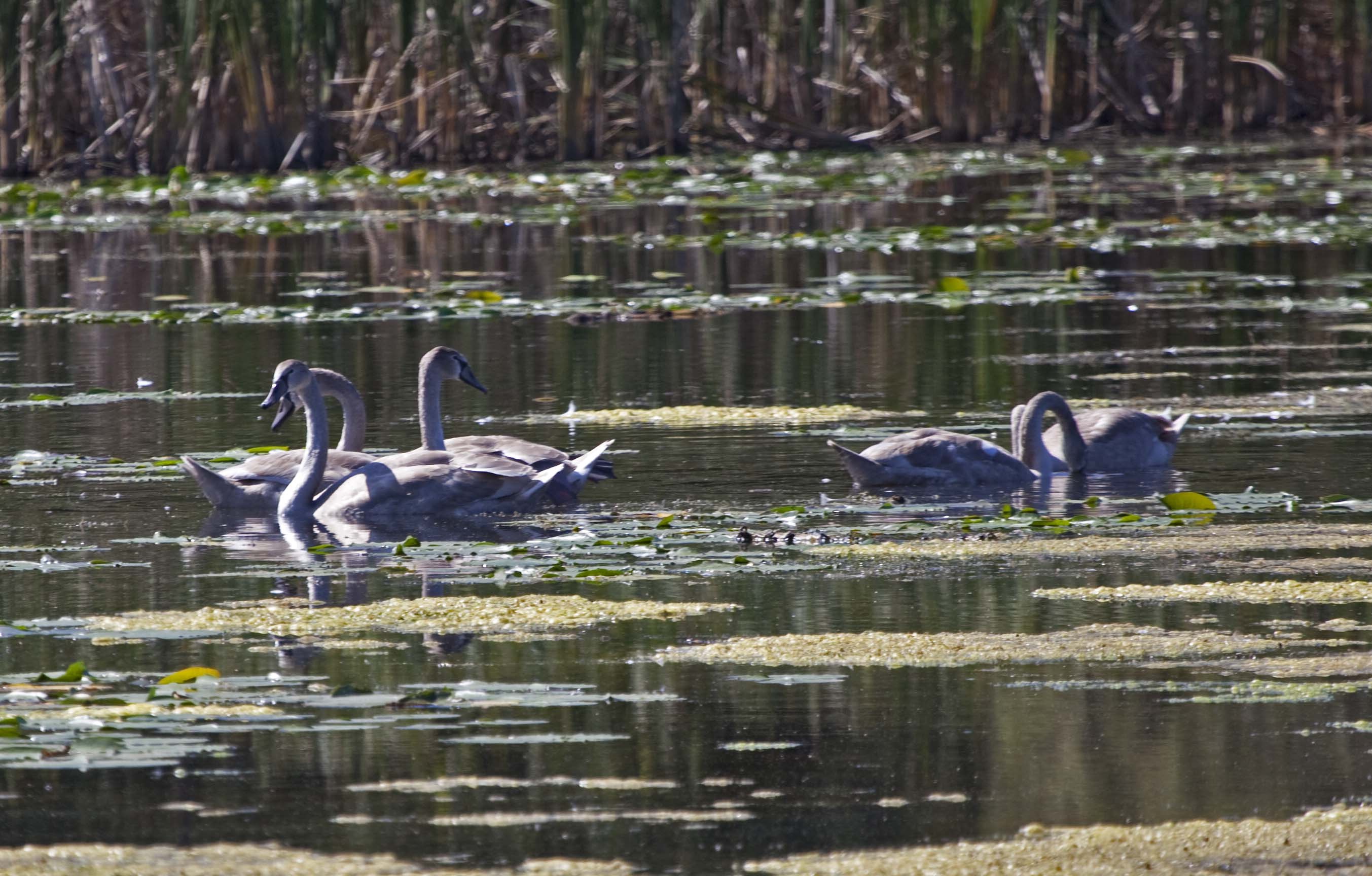 Mute Swans are monogamous and will often use the same nest each year. They feed on a wide range of vegetation, both aquatic and land.