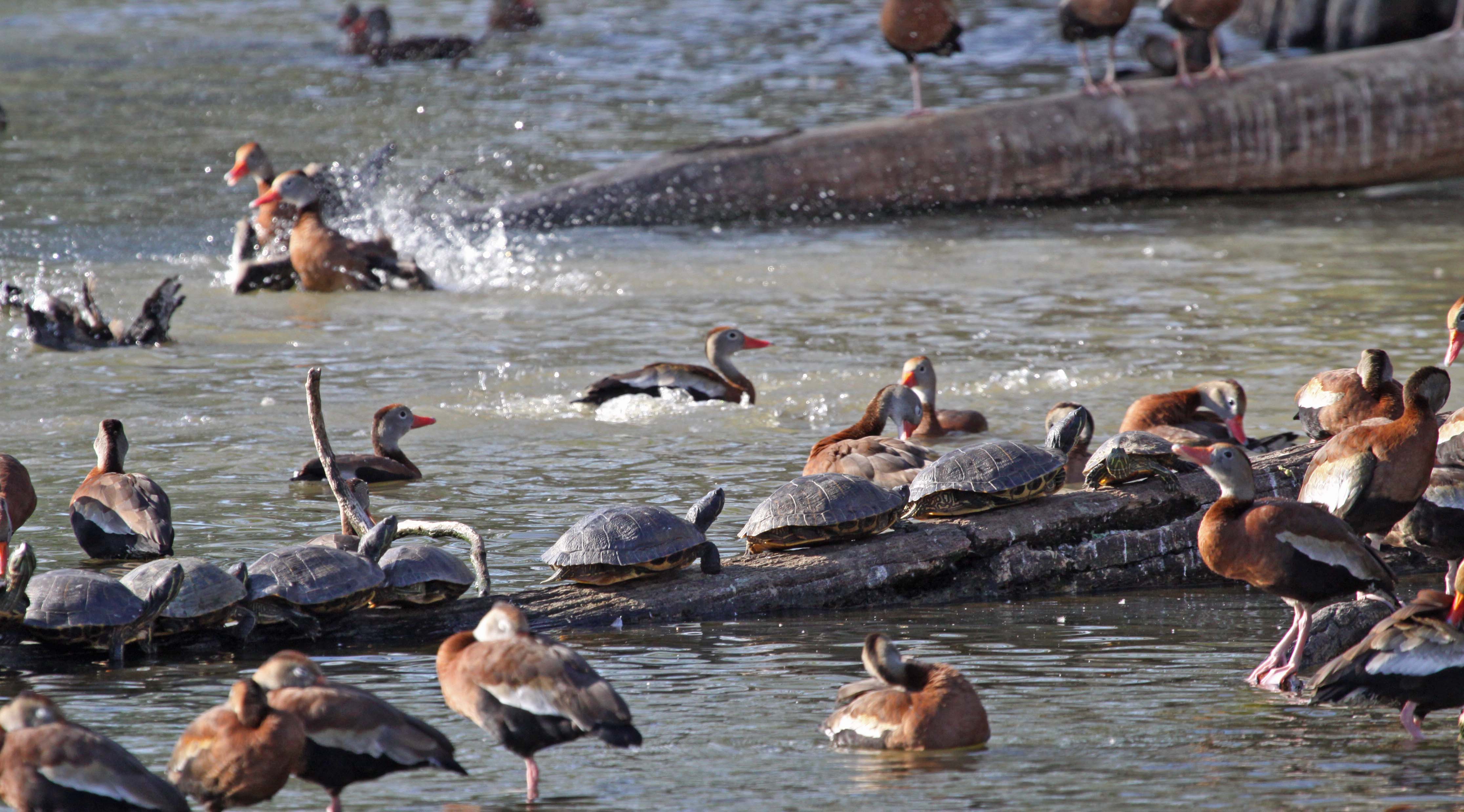 Audubon Park and Audubon Zoo- The Audubon Zoo is located within the park. Both places are worth visiting. The area around the park is great for Black-bellied Whistling Ducks (I have seen hundreds there), Anhingas, Grebes, etc. The Zoo has a pond with a fair number of imported ducks, swans, cormorants, and pelicans. Along with these birds quite a few "wild" birds like the area also. It was neat watching the Snowy Egrets land on the Pelicans back trying to get the fish that had been thrown to the Pelican.