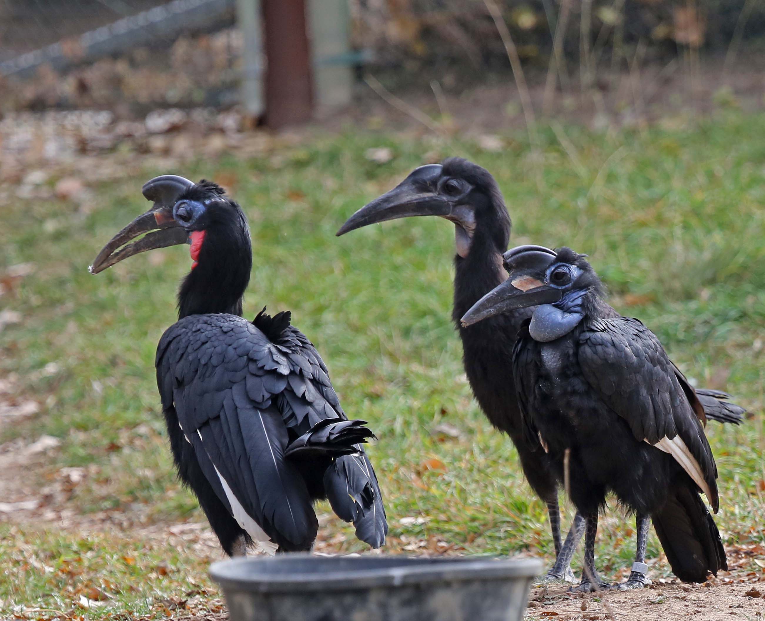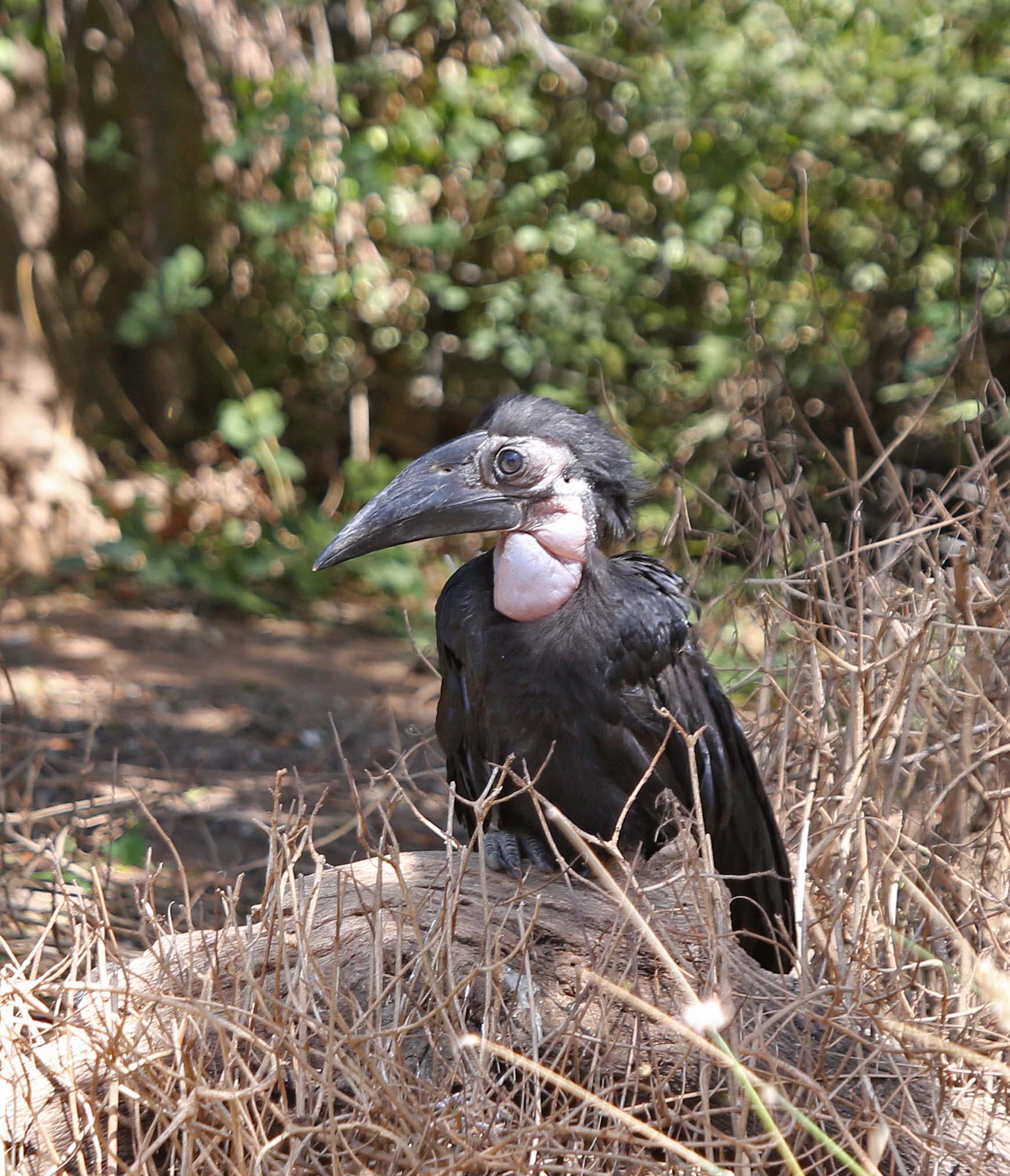 The Northern Ground-hornbill is also known as the Abyssinian Ground-hornbill. There are two species of Ground-hornbills, the other is the Southern Ground Hornbill. Northern Ground-hornbill males have red throat pouches, the females blue. Their long lashes are useful for keeping blowing sand out of their eyes in Africa.